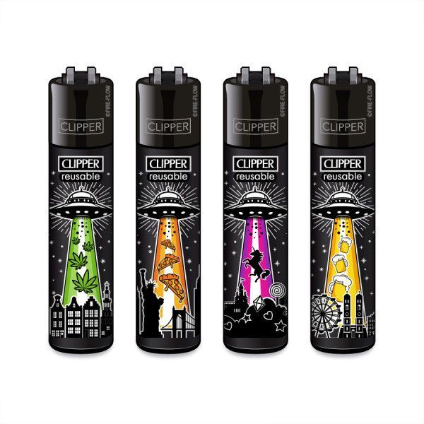 Clipper Reibradfeuerzeuge Ufos, 4 Stück
