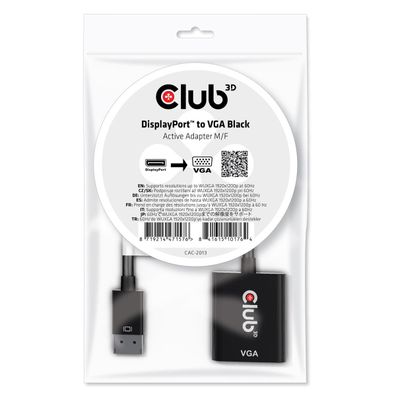 • Club 3D CAC-2013 Club3D Adapter DisplayPort > VGA aktiv St/Bu schwarz Polybeutel