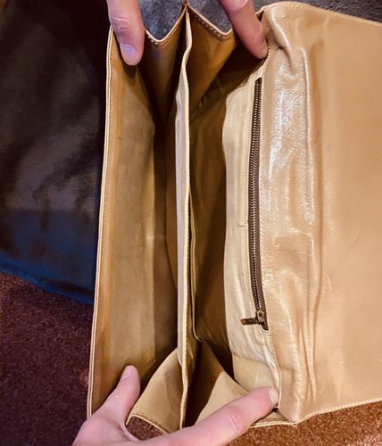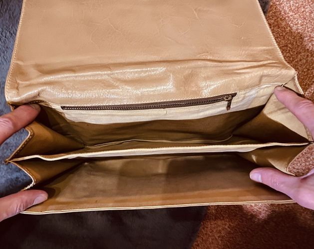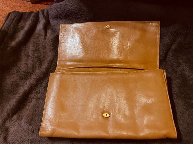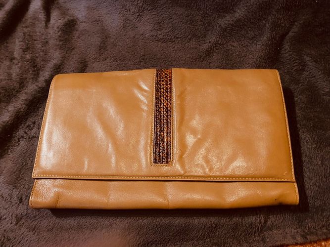 Clutch beige braun Glattleder 80er/90er neuwertig