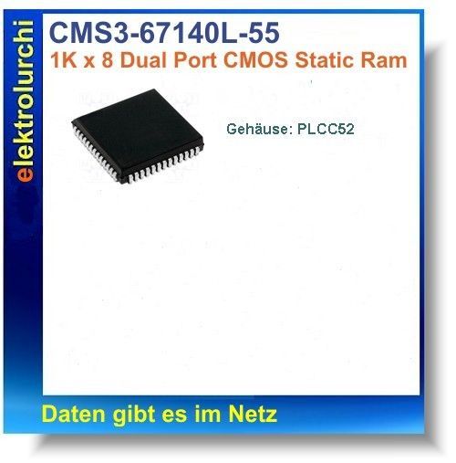 Sie bieten hier auf folgenden Artikel 1 Stück CMS3-67140L-55 - 1K x 8 CMOS Static Ram, IC PLCC52, TEMIC Vintage Nostalgie Schaltkreis: Der Baustein stammt aus den 90er Jahren und ist nur noch sehr schwer zu bekommen. Sie sind trotz allem neu und unbenutzt. Technische Daten Kapazität: 1k x 8-Bit Vers