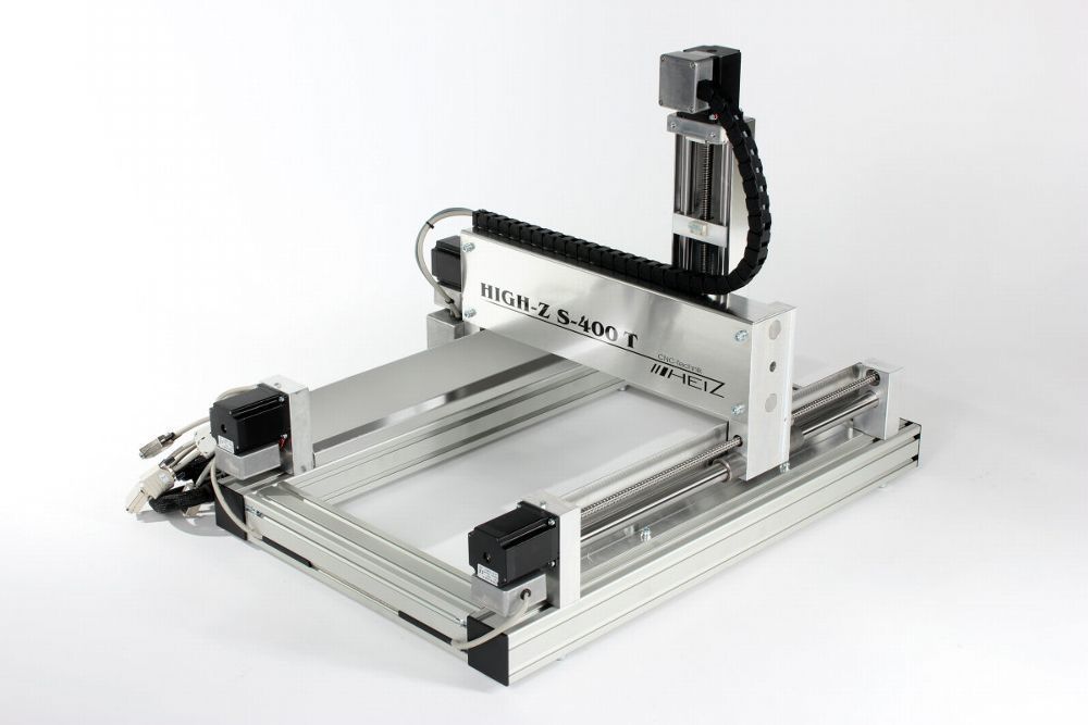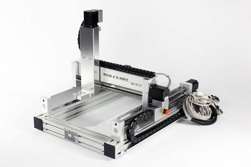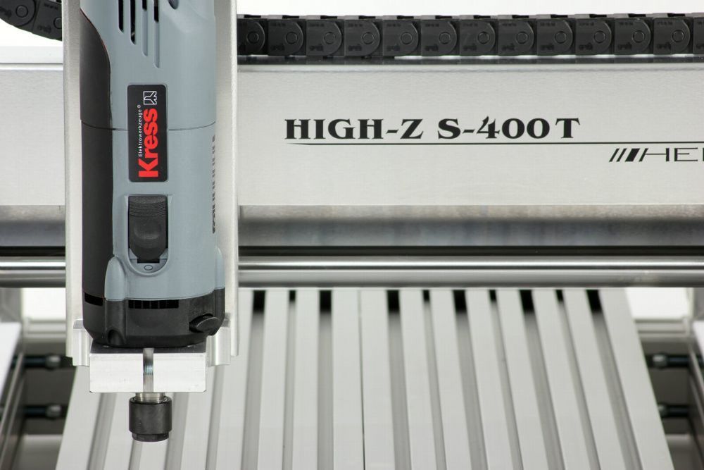 CNC Fräse High-Z S-400/T Die High-Z/T wurde konzipiert für noch mehr Genauigkeit (Wiederholgenauigkeit etwa 0,01 mm) und vor allem für wirklich hohe Geschwindigkeiten bis zu 12 Metern pro Minute! Durch die verwendeten Kugelumlaufspindeln erreicht die High-Z/T CNC Fräseinheit / CNC Gravierer eine fantastische Genauigkeit und ein fast nicht mehr messbares Umkehrspiel von etwa 0,015 mm.