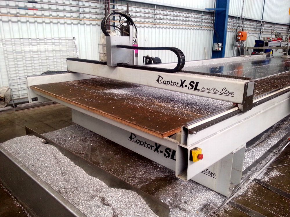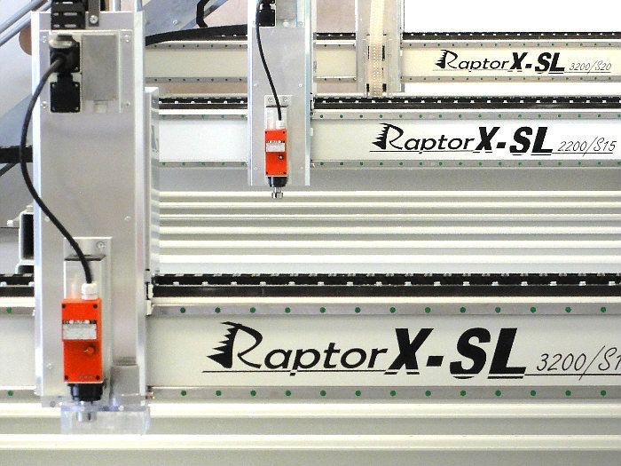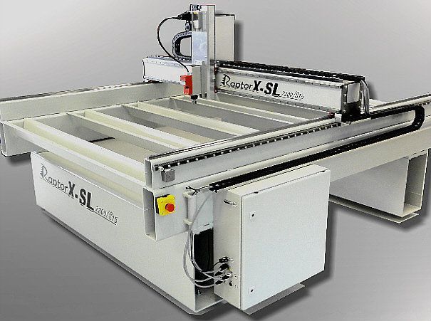 XXL Fräsmaschine / Portalfräse RaptorX-SL3200/S20 mit 3200x2010x300mm Verfahrweg. Stahlrahmenkonstruktion mit in der Höhe verstellbare Tischauflage.