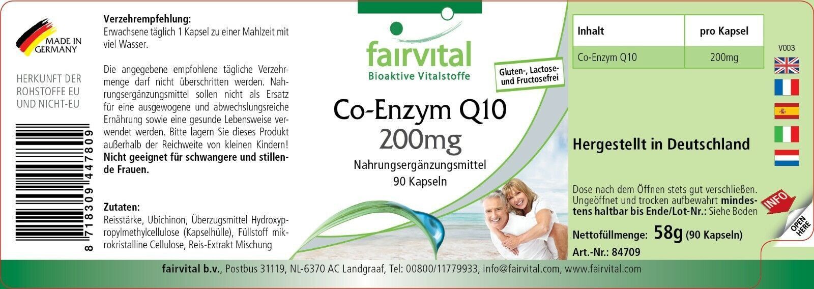 fairvital Co-Enzym Q10 200mg - 90 Kapseln Ubiquinon, hochdosiert, vegan - fairvital