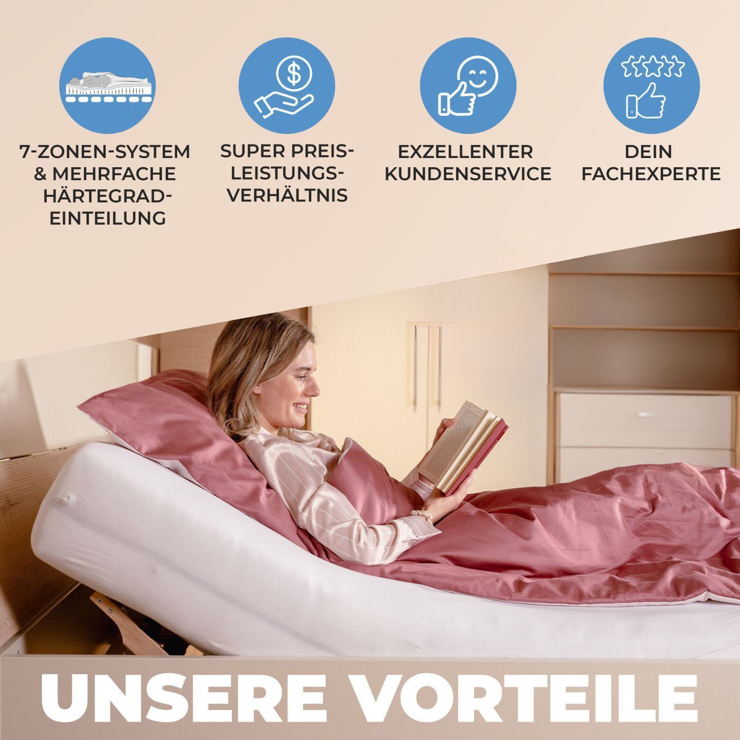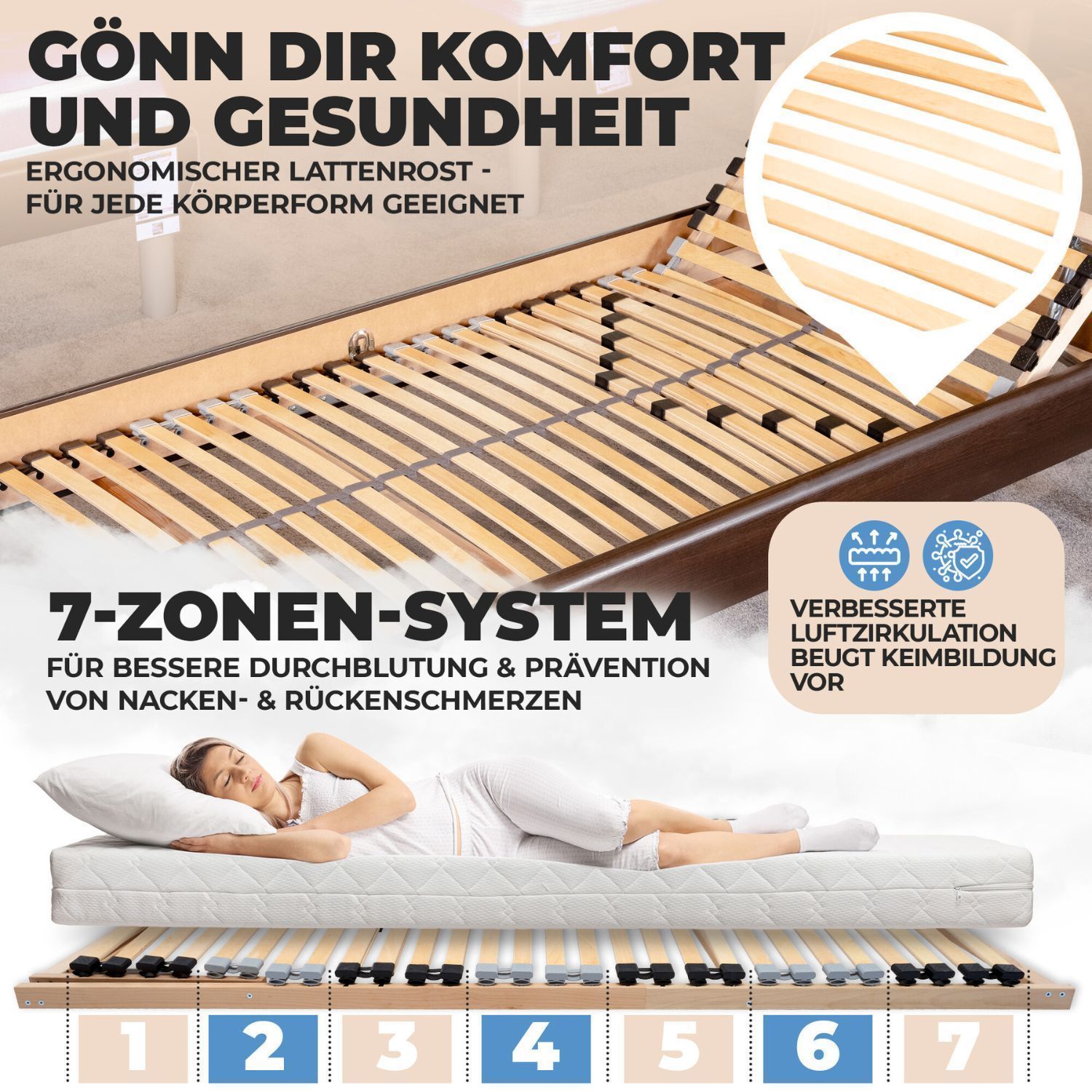 Coemo 7-Zonen Lattenrost ERGO K 90x200 cm Kopfteil verstellbar Mittelband