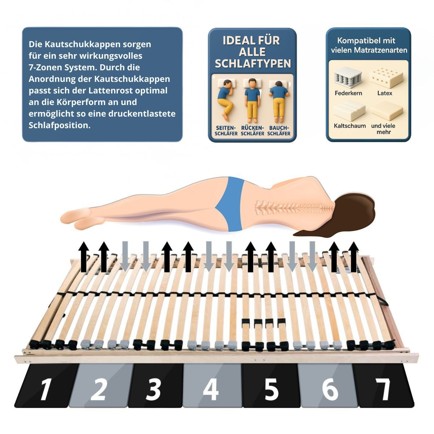 Coemo 7 -Zonen Lattenrost Ergo KF mit Kopf- & Fußteilverstellung