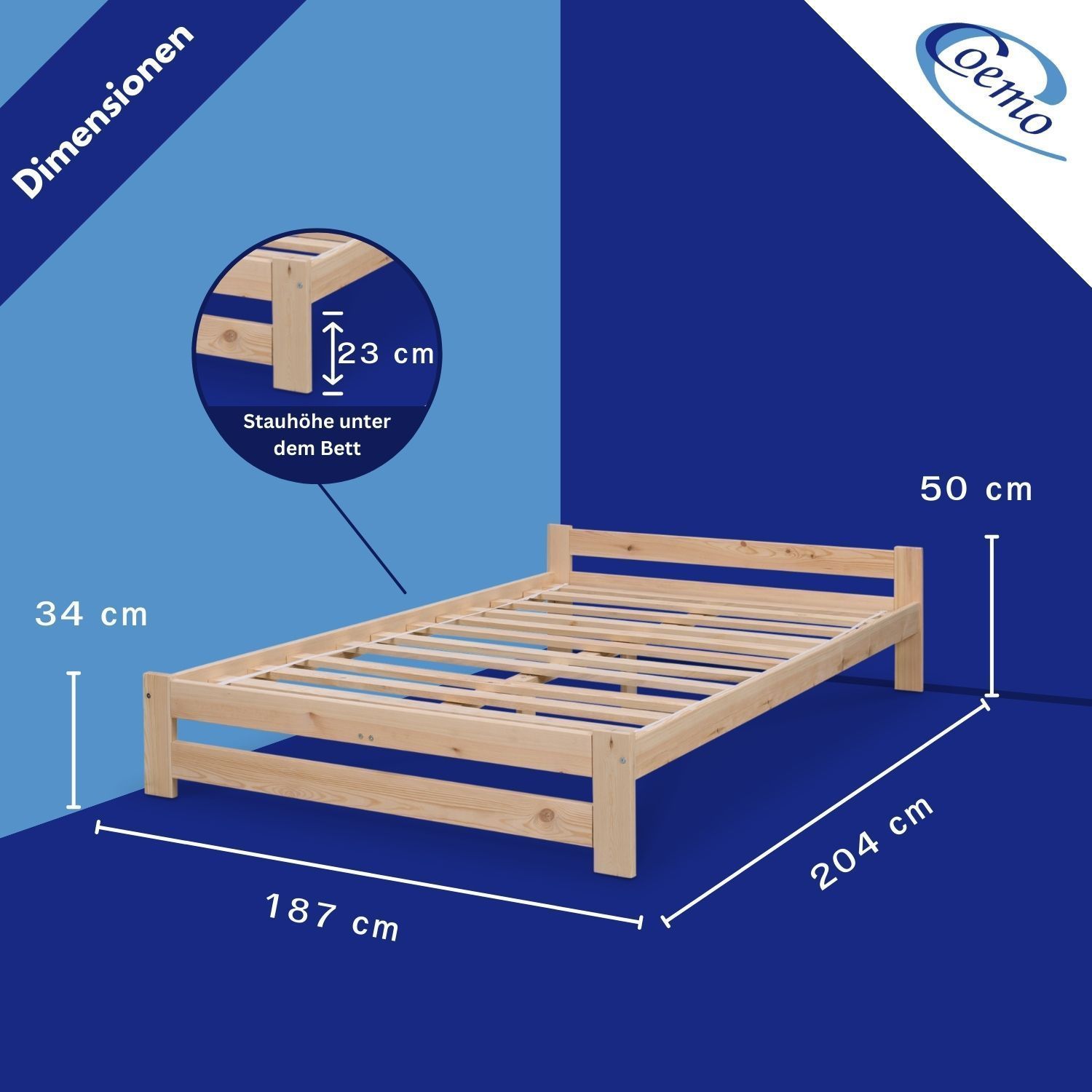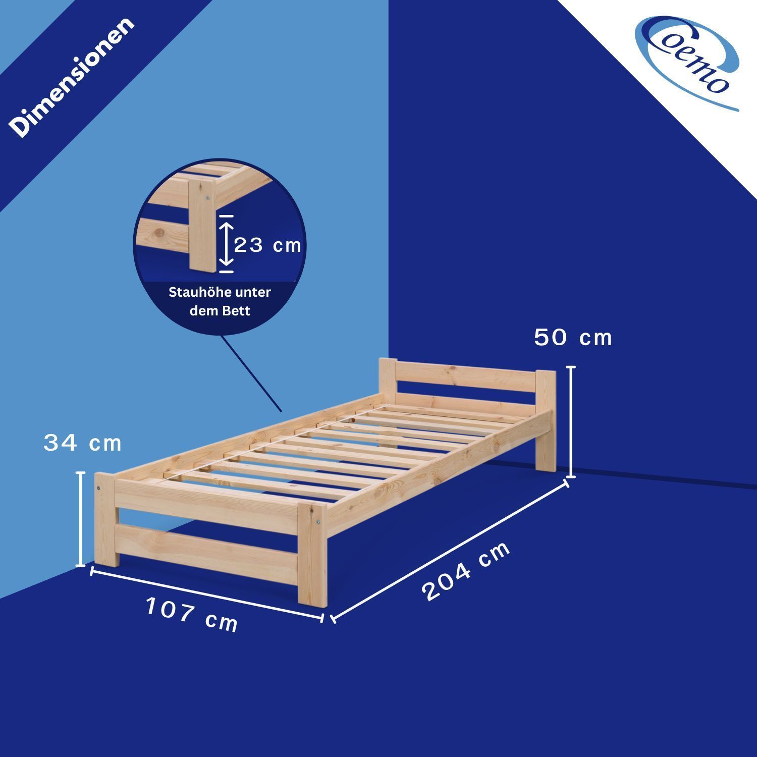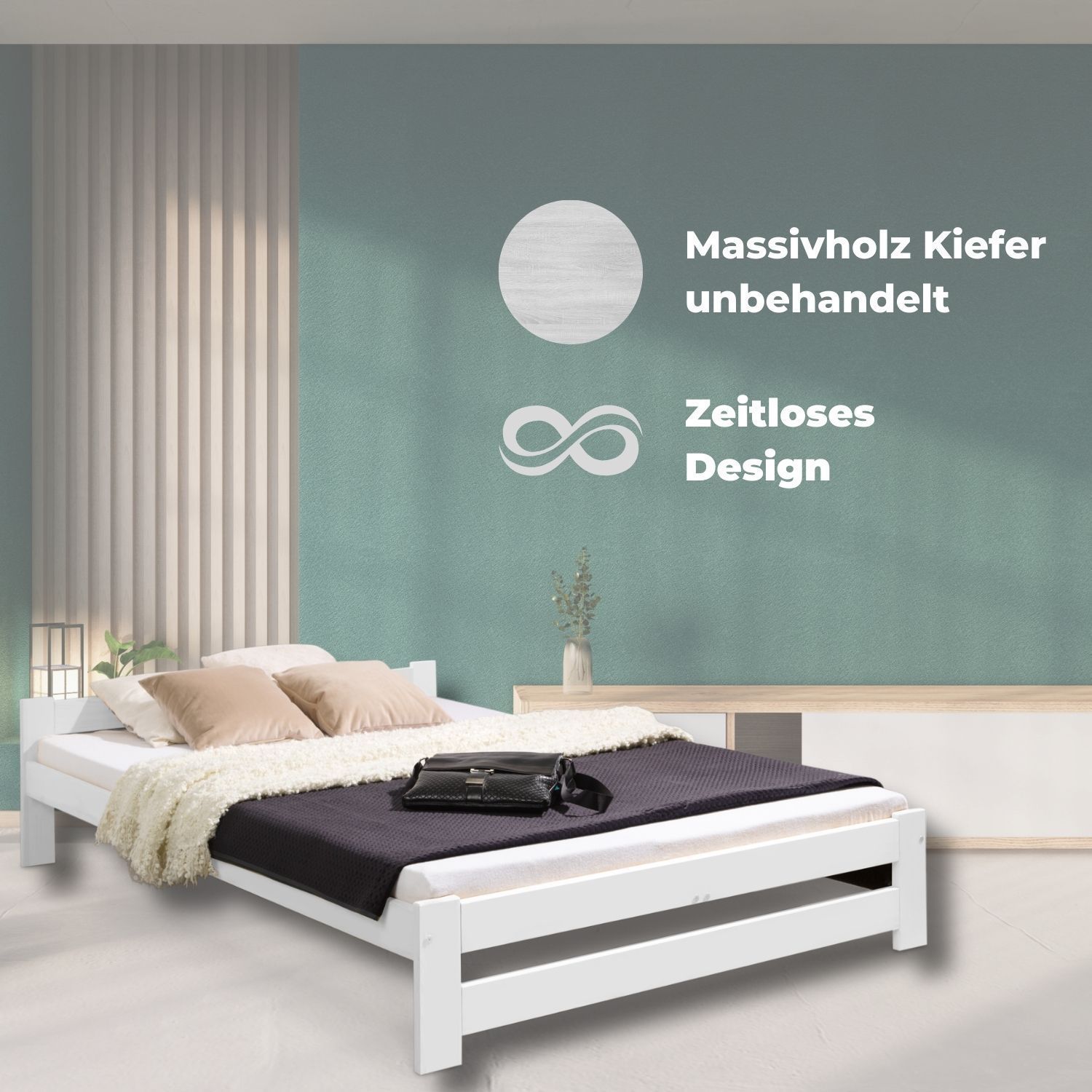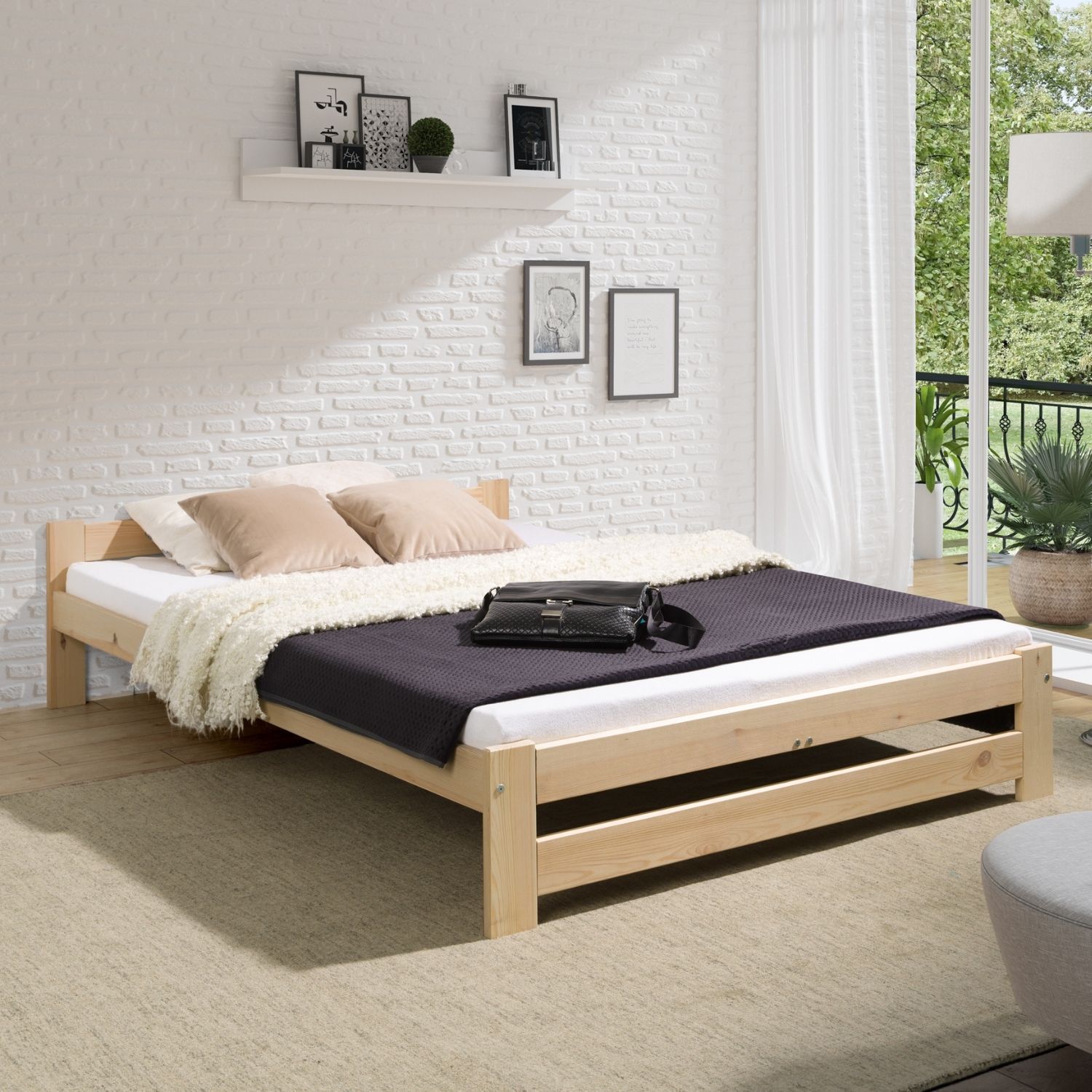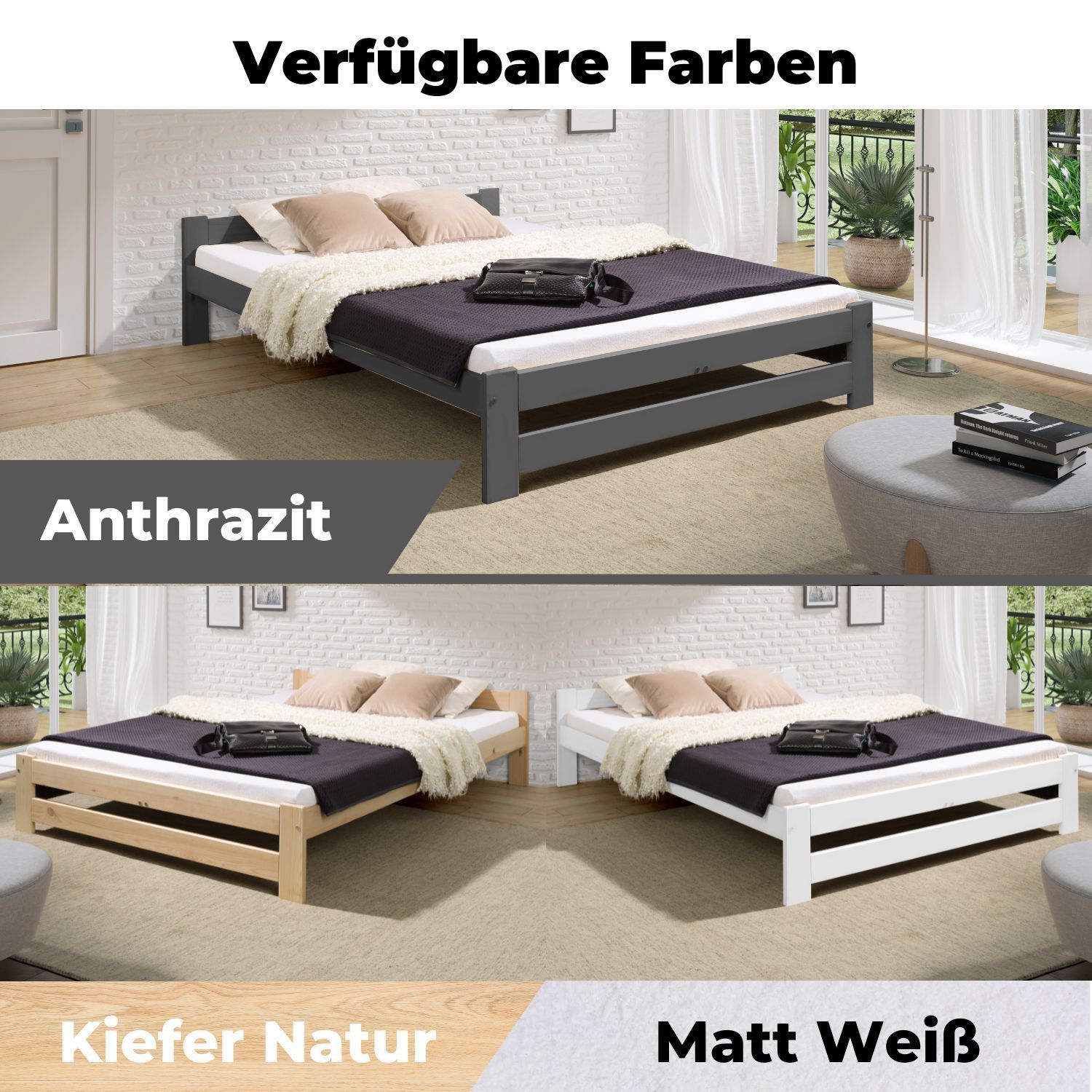 Coemo Bett Classico Holzbett Bettgestell mit Lattenrost Massivholz Kiefer