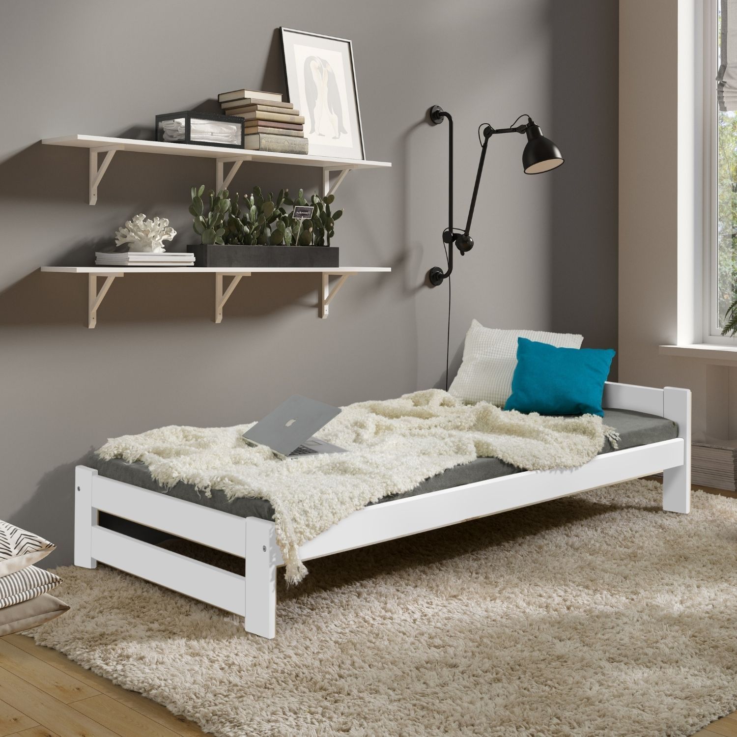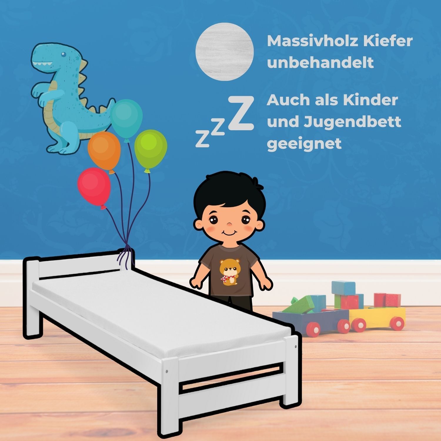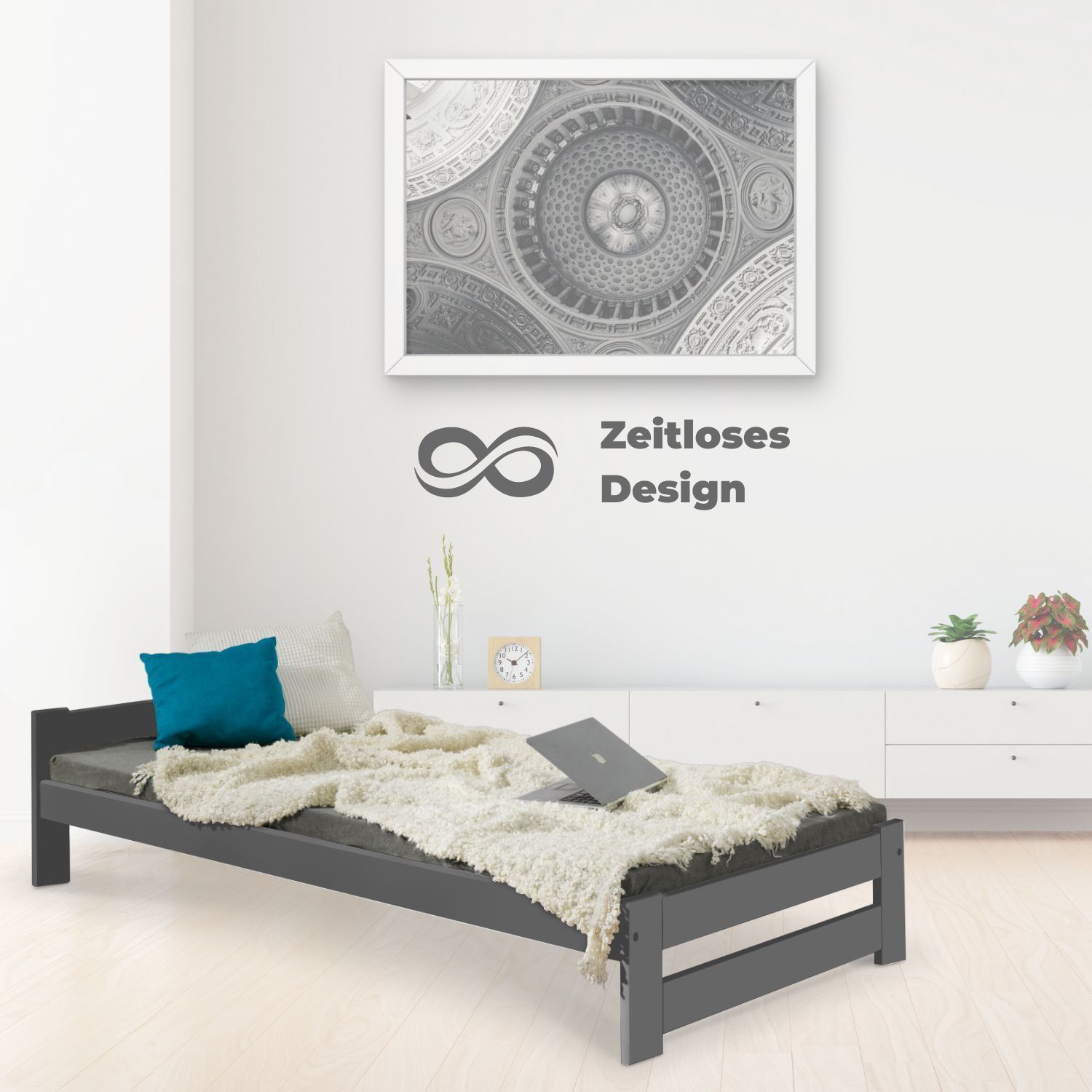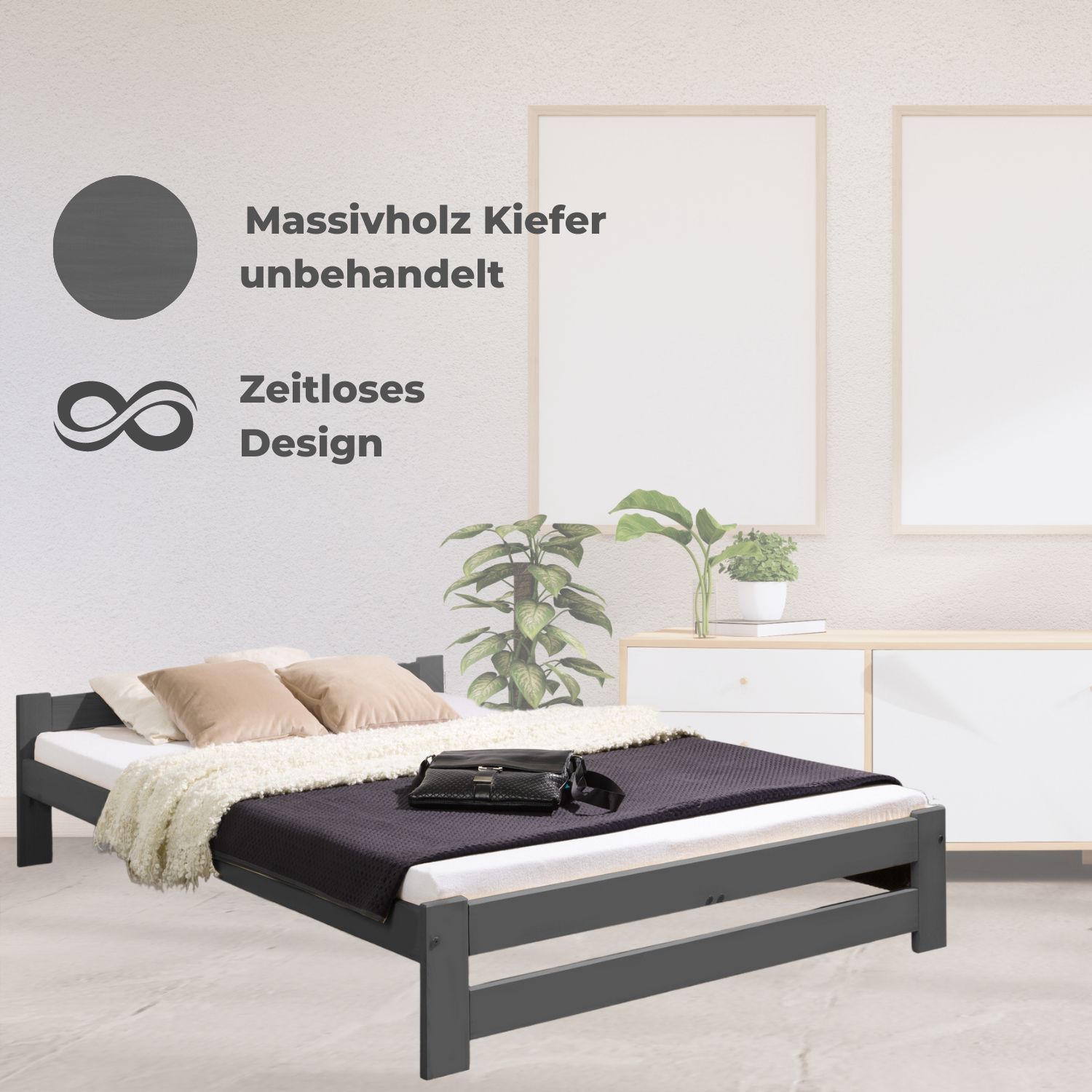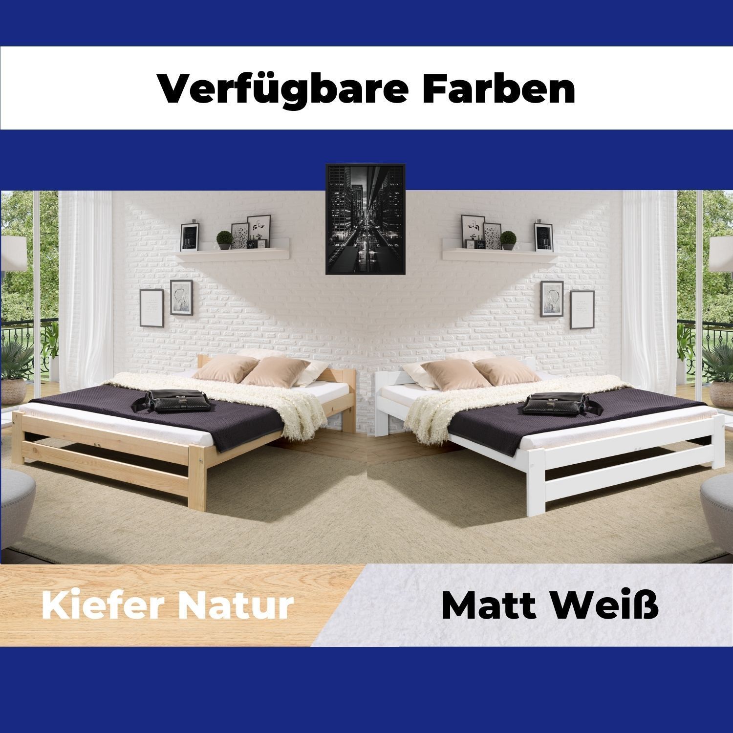Coemo Bett Classico Holzbett Bettgestell mit Lattenrost Massivholz Kiefer