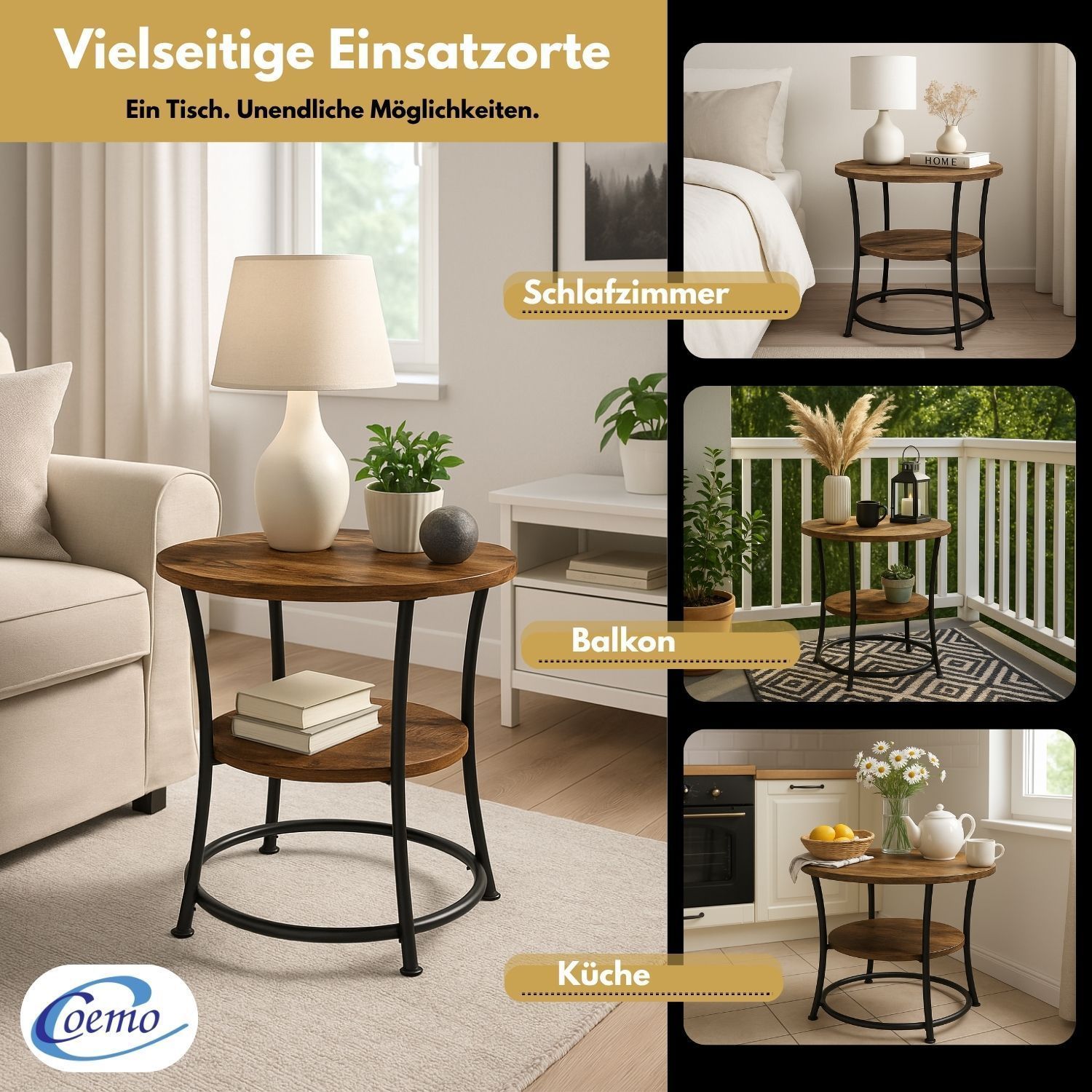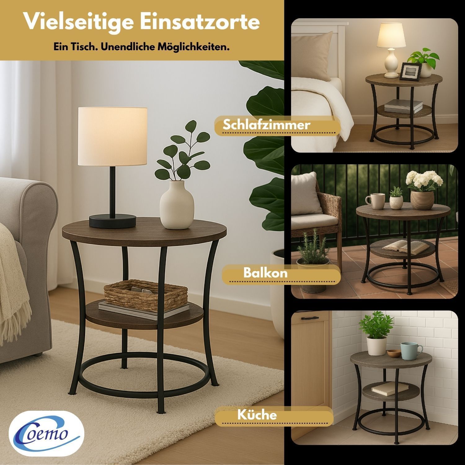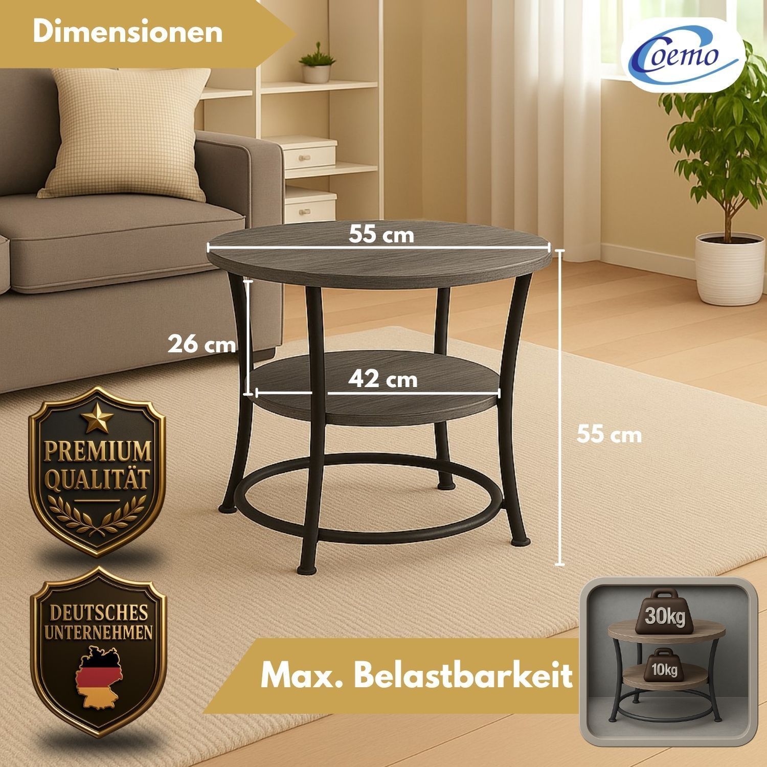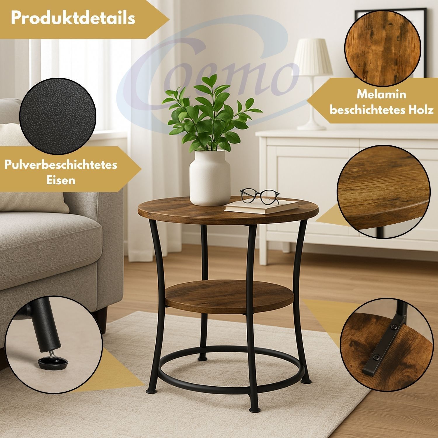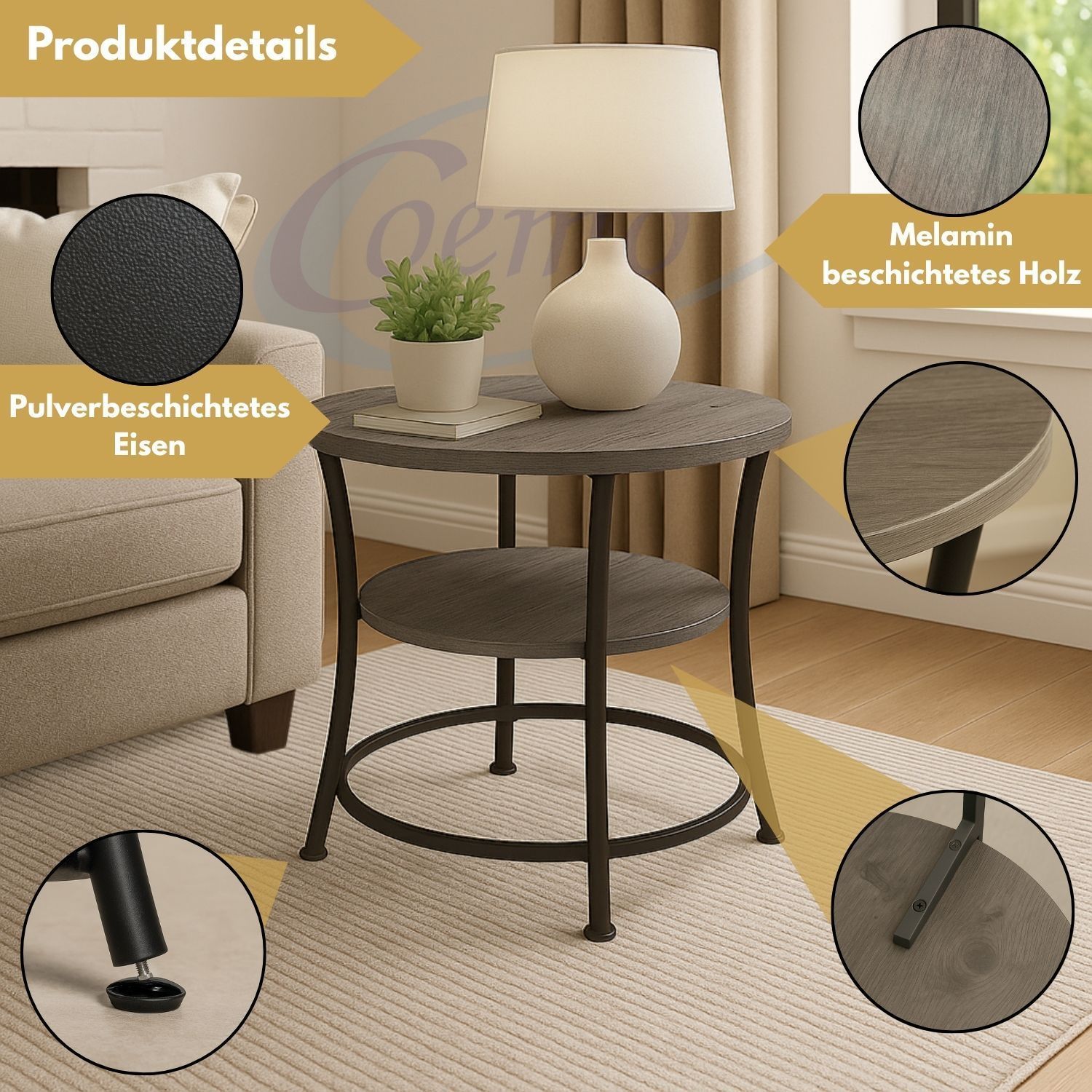 Coemo Couchtisch Tamy 2 Ebenen - Holz mit Metallrahmen - Ø 55 cm x 55 cm