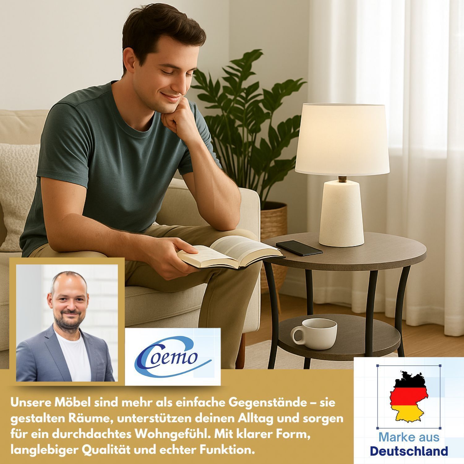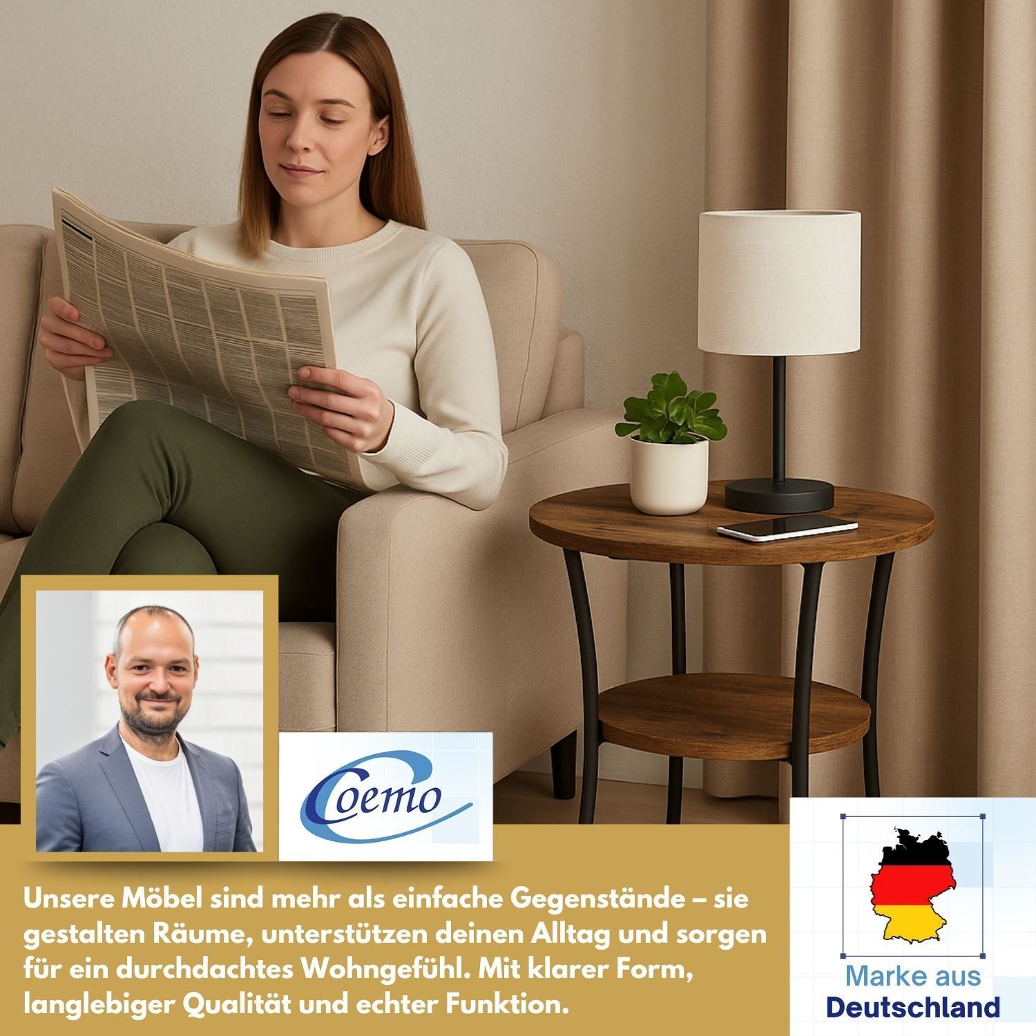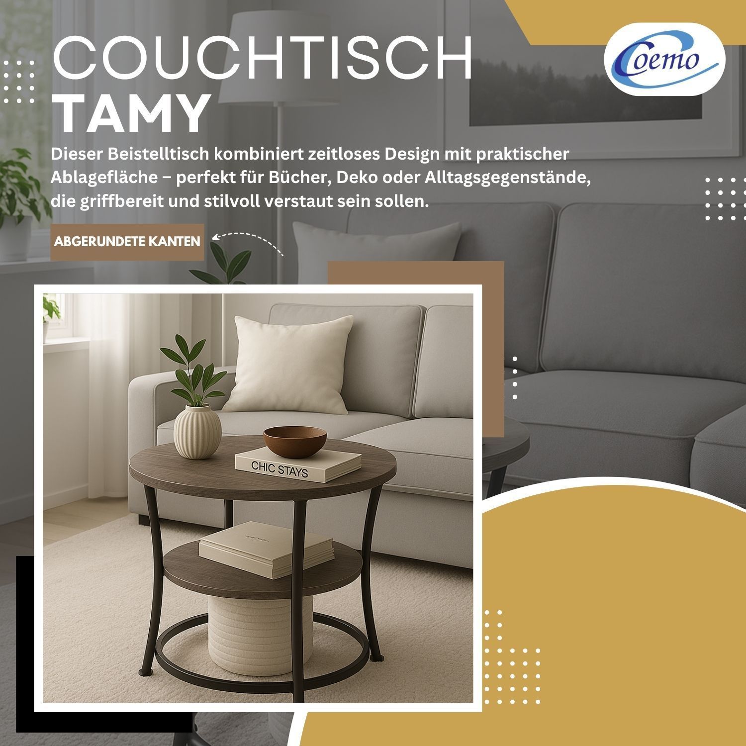 Funktionalität trifft Stil – Der perfekte Beistelltisch für jedes Zuhause Der Coemo Couchtisch Tamy mit 2 Ebenen vereint funktionale Raffinesse mit zeitloser Ästhetik. Seine warme Holzoptik in Kombination mit einem schwarzen, pulverbeschichteten Eisenrahmen macht ihn zu einem echten Hingucker im Woh