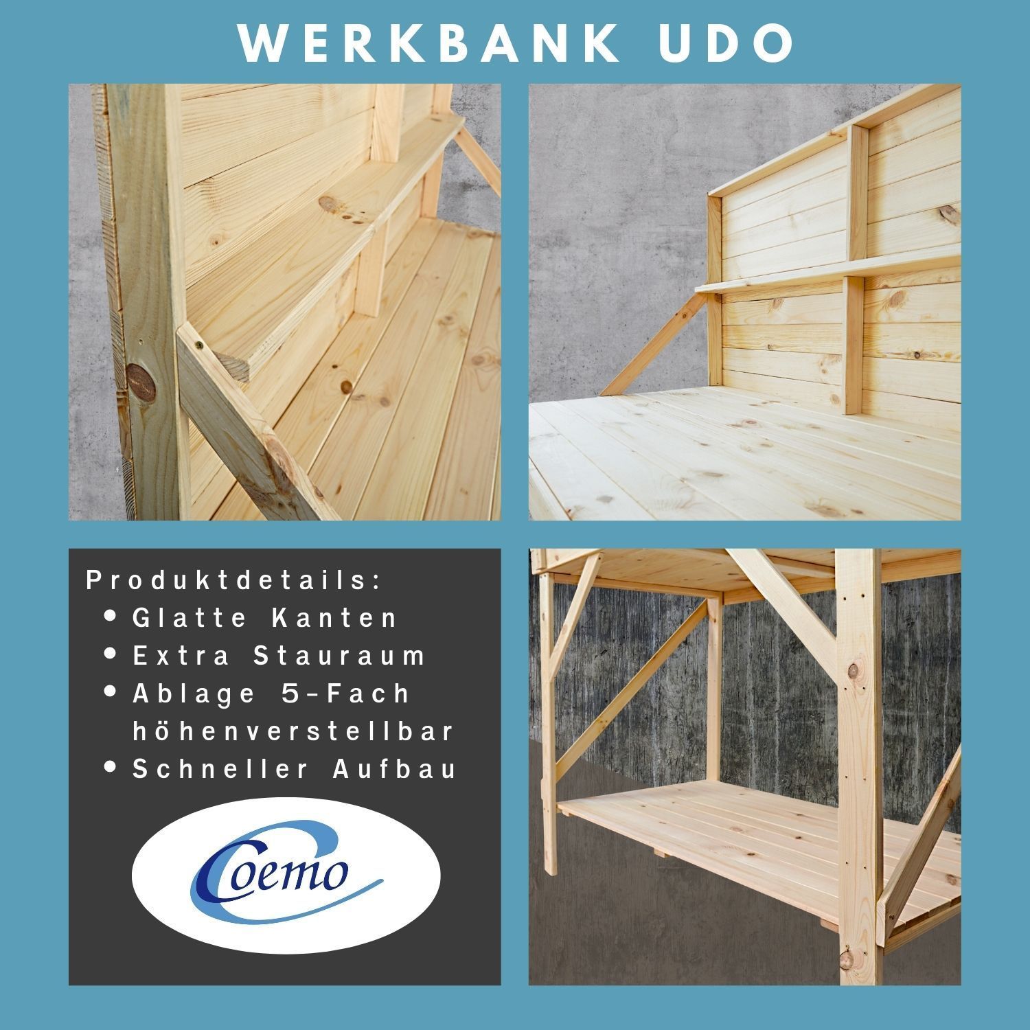 Coemo Heimwerkerbank Udo 120x64x149cm