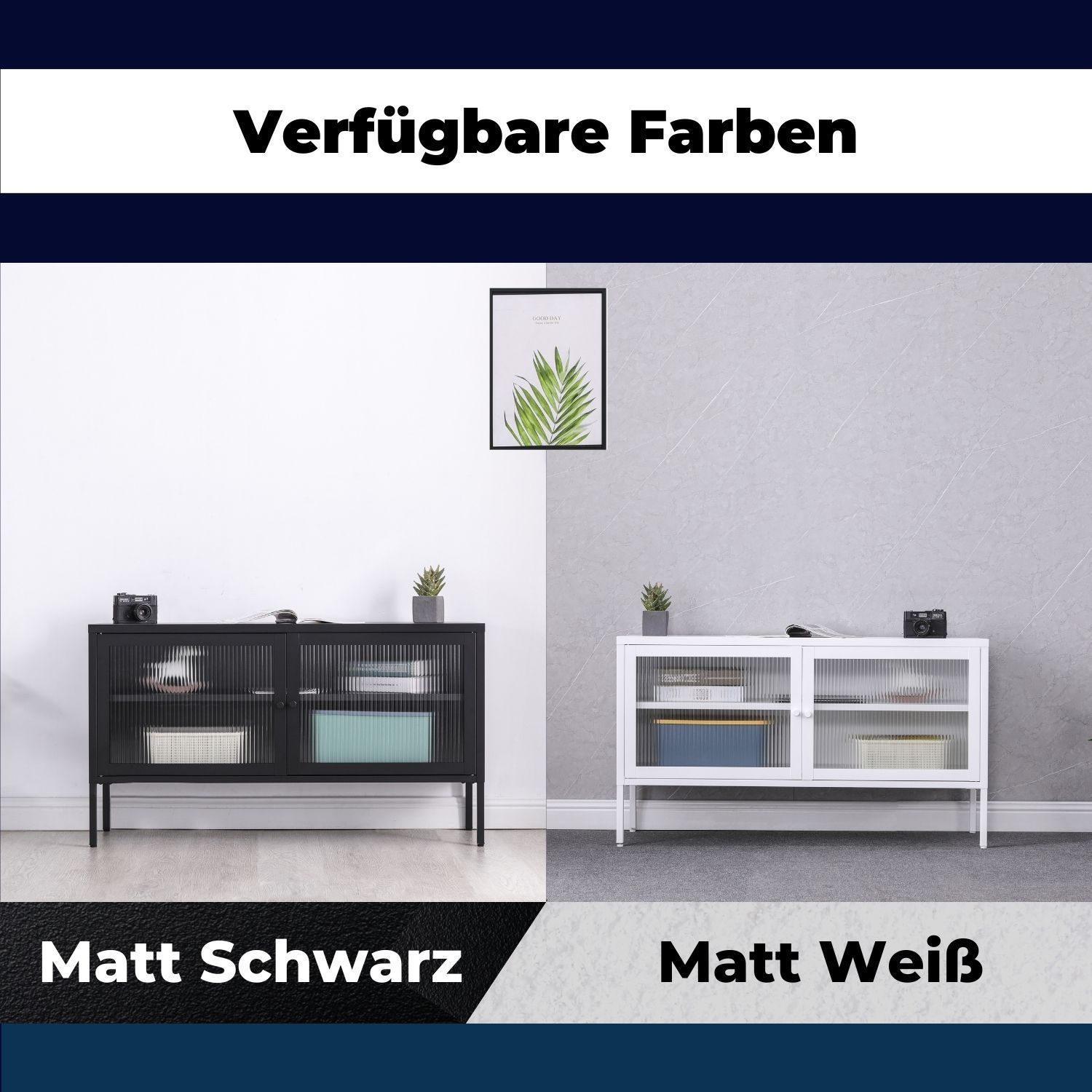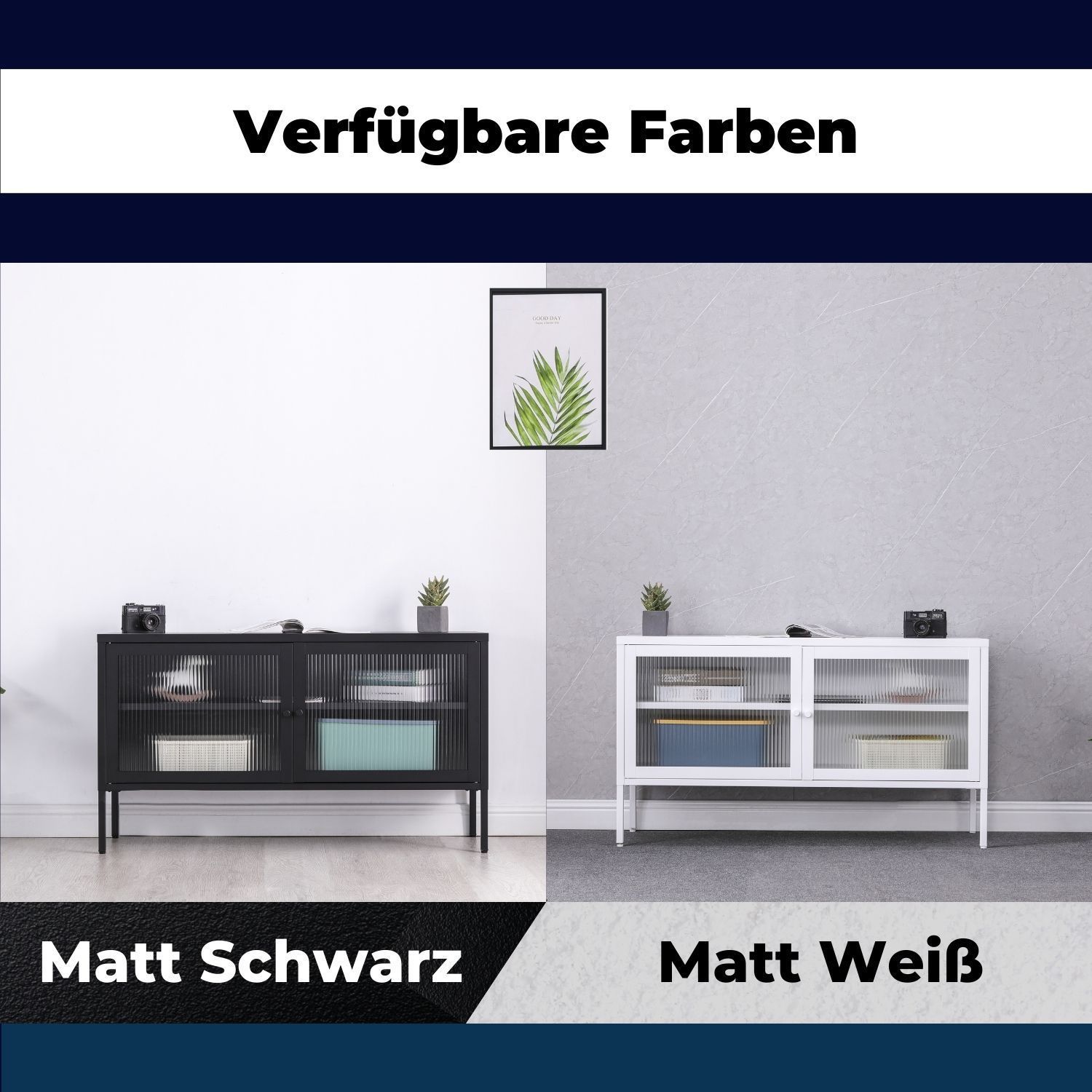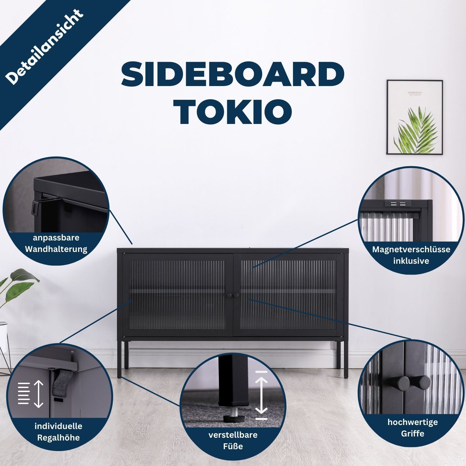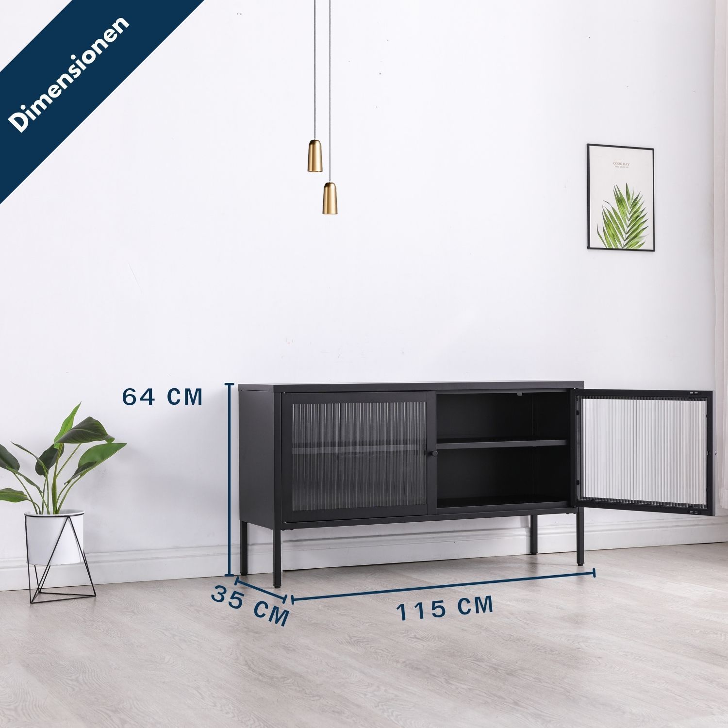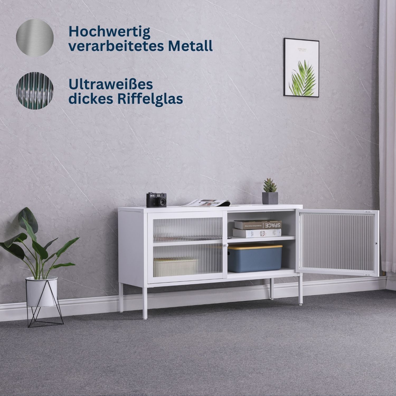 Elegantes Sideboard aus Metall mit zwei Flügeltüren Metall ist das neue Holz! Das Sideboard Tokio bedient diesen Trend. Klare Linien und unaufgeregte Materialien liefern einen minimalistischen Look. Der Korpus der Kommode ist aus hochwertigem, sauber verarbeitetem Metall gefertigt. Die gerahmten Tür
