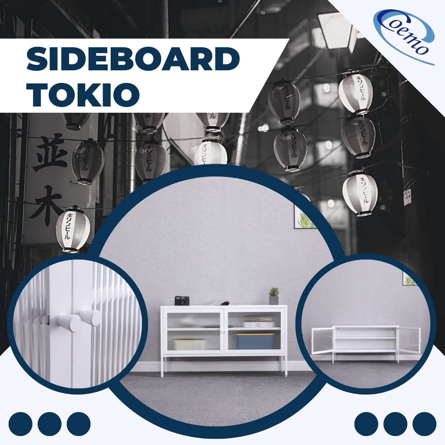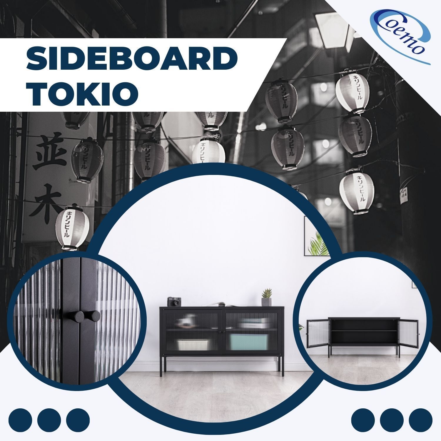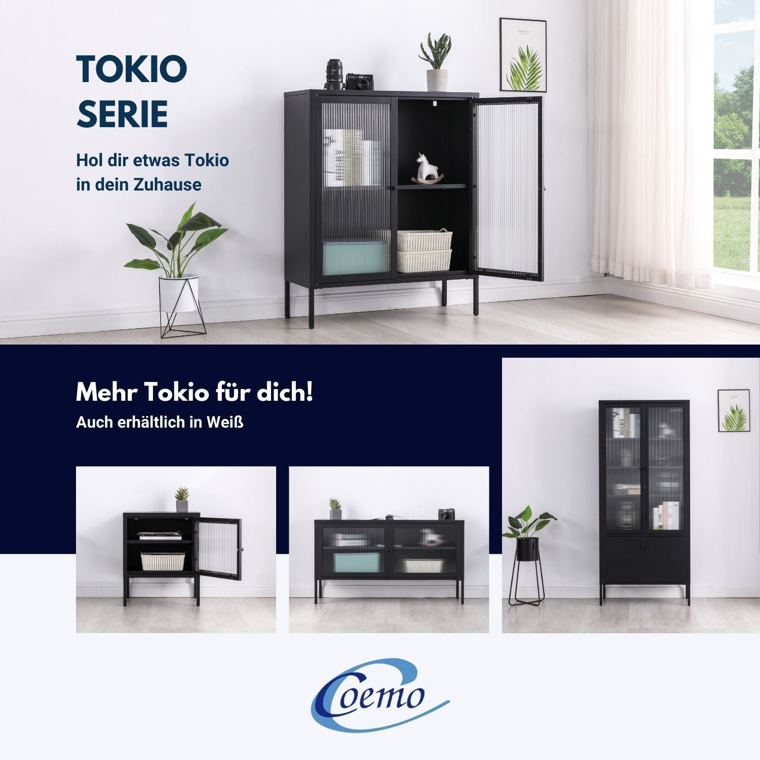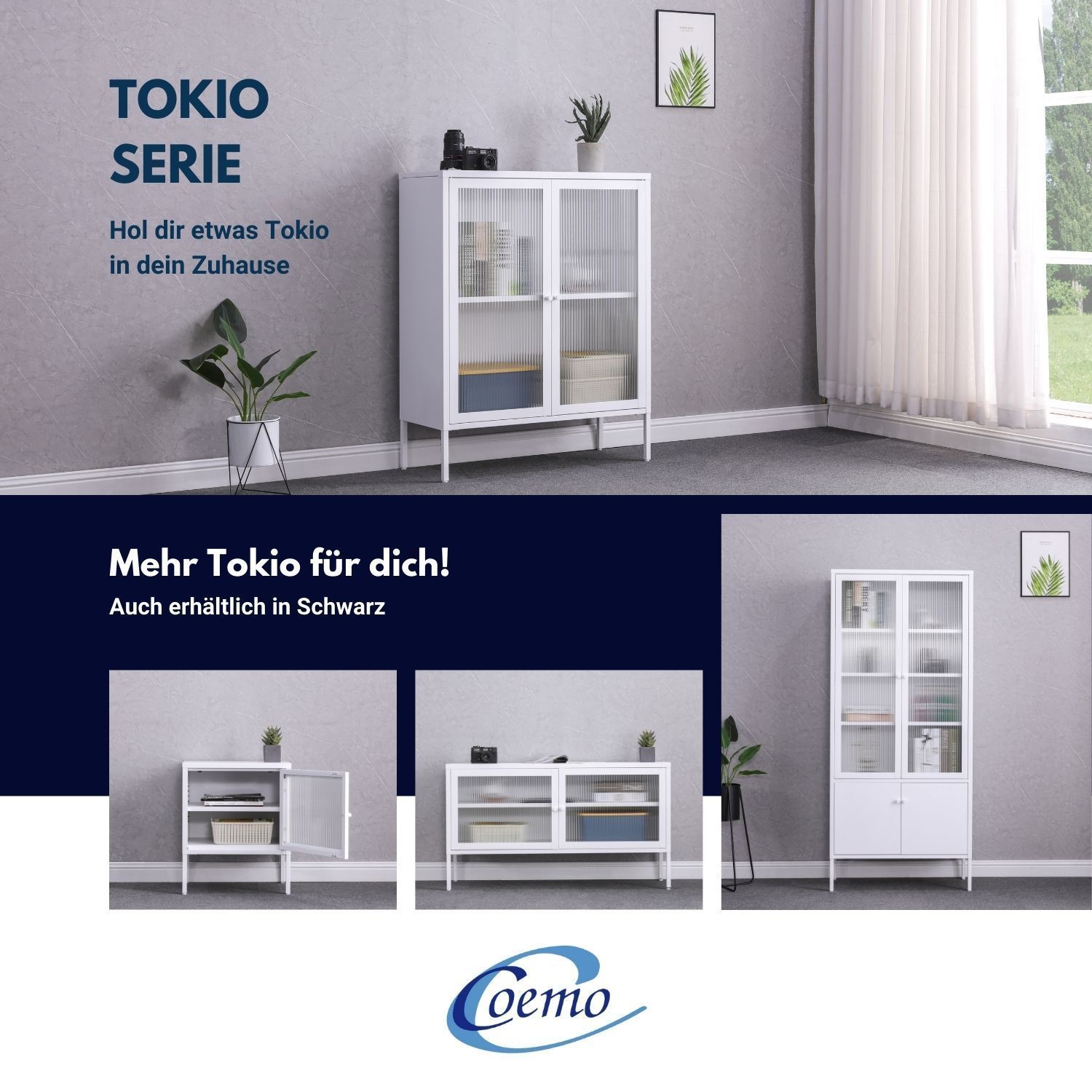 Coemo Sideboard Tokio aus Metall mit Glastüren