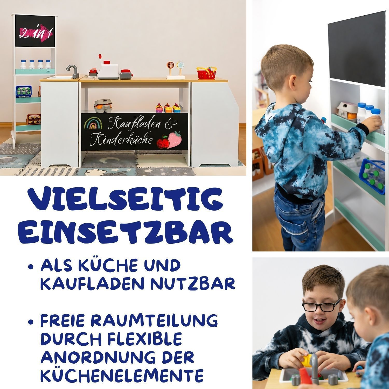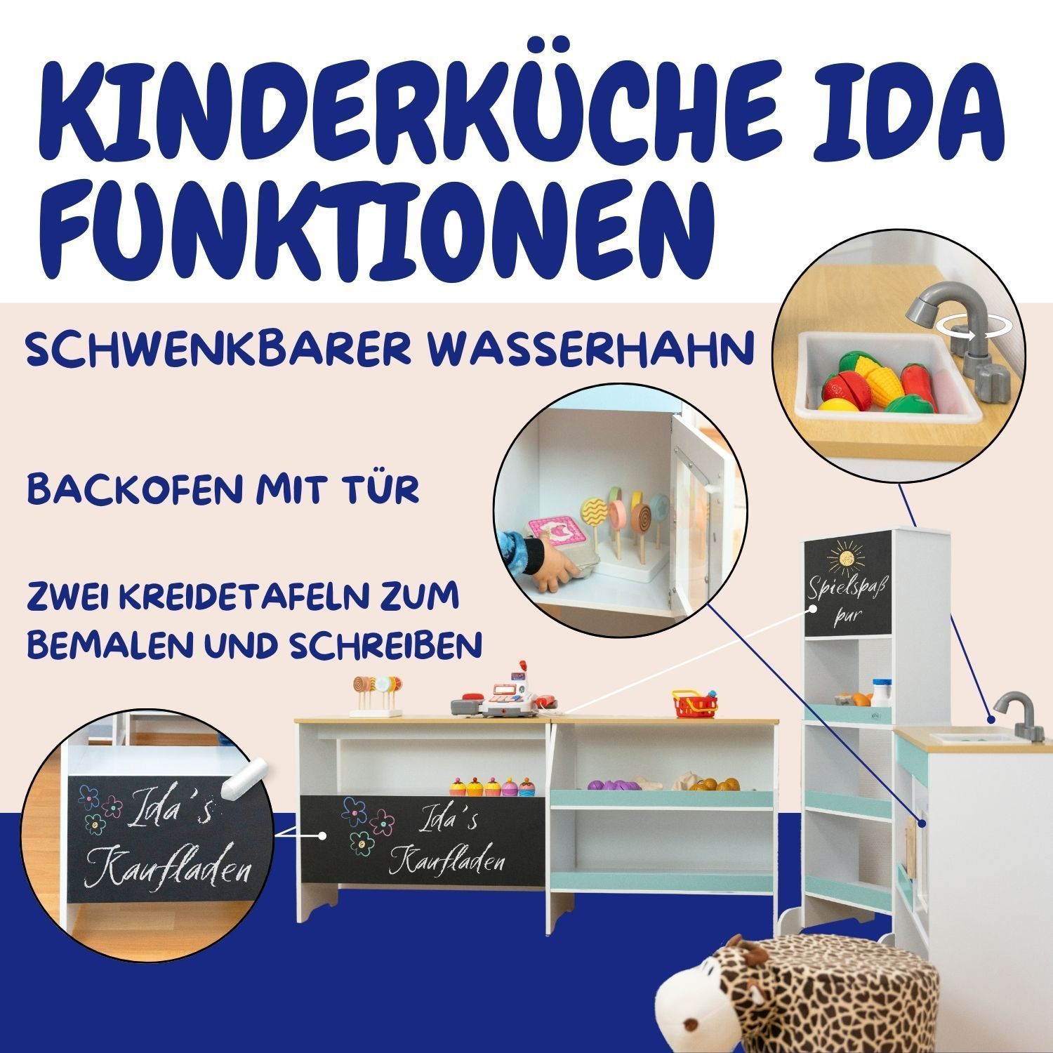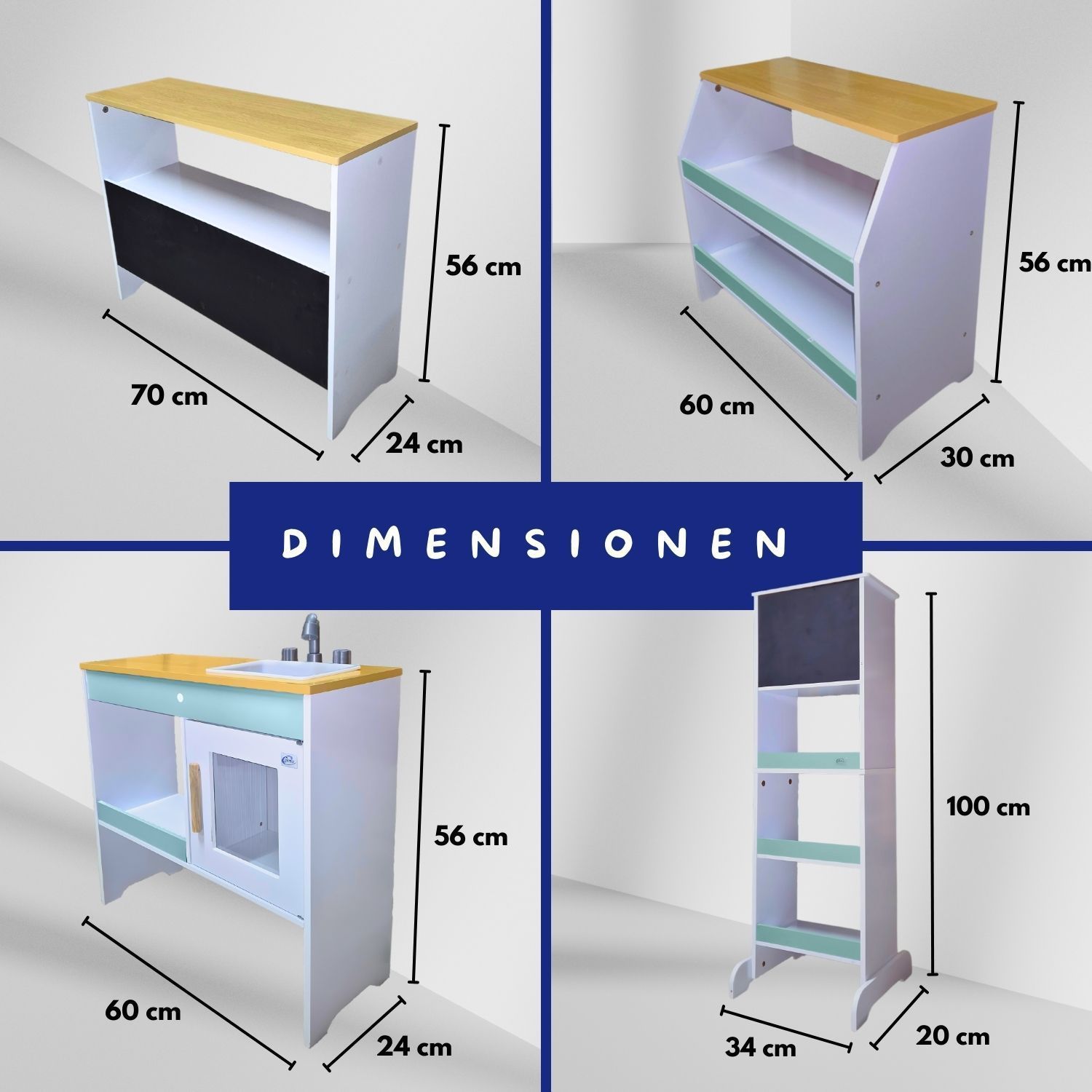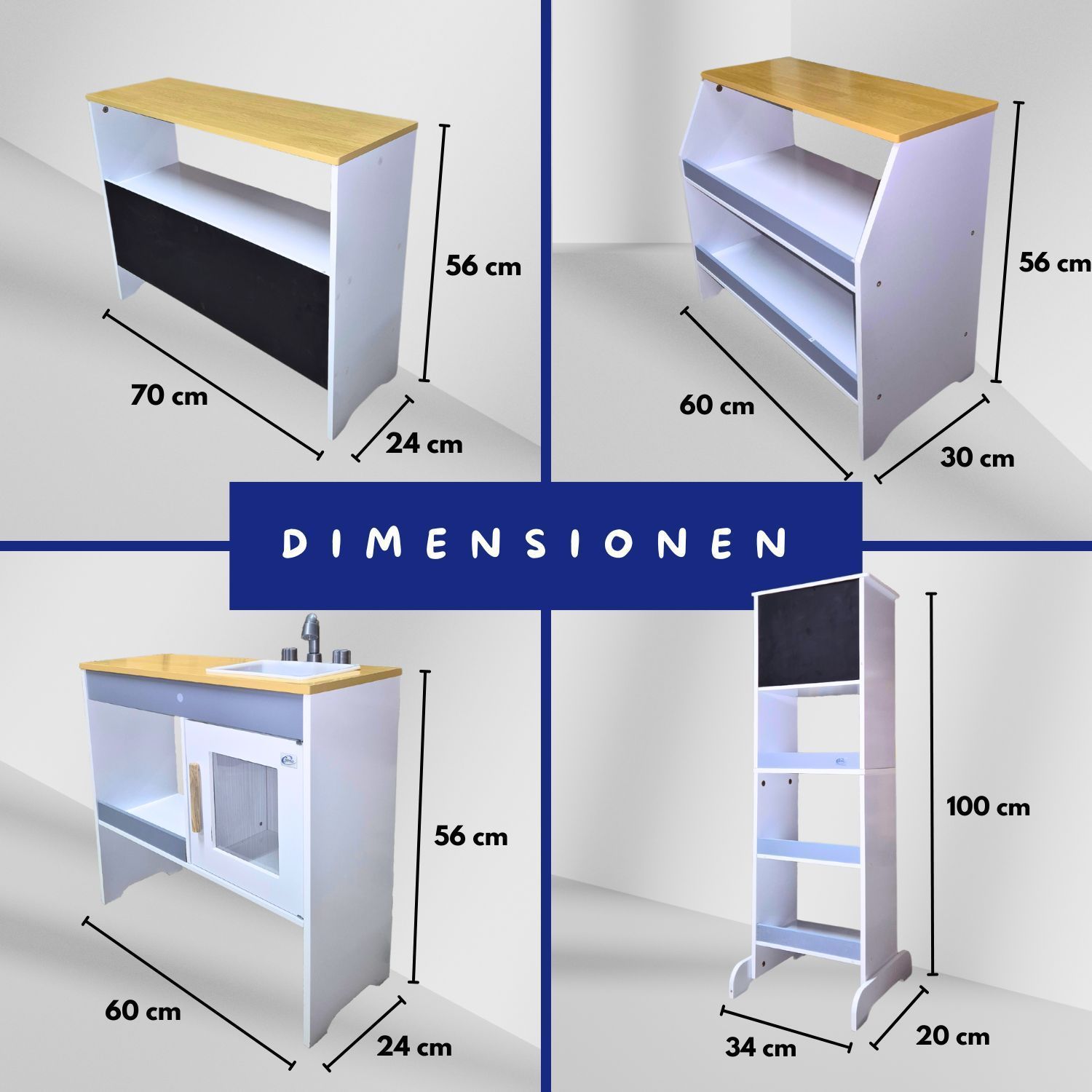 Coemo Spielküche Ida 4er Set mit Waschbecken Holz Kinderküche