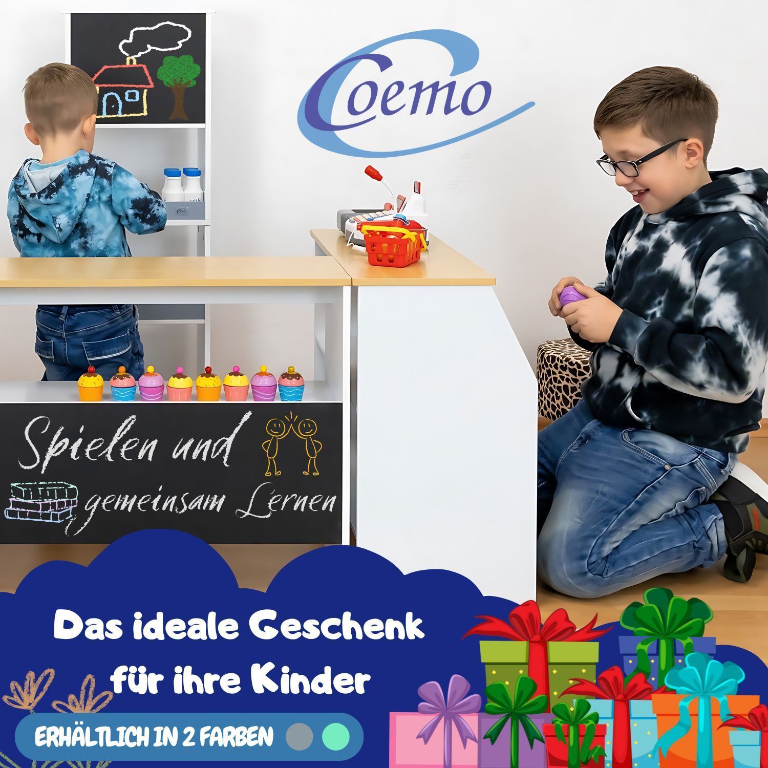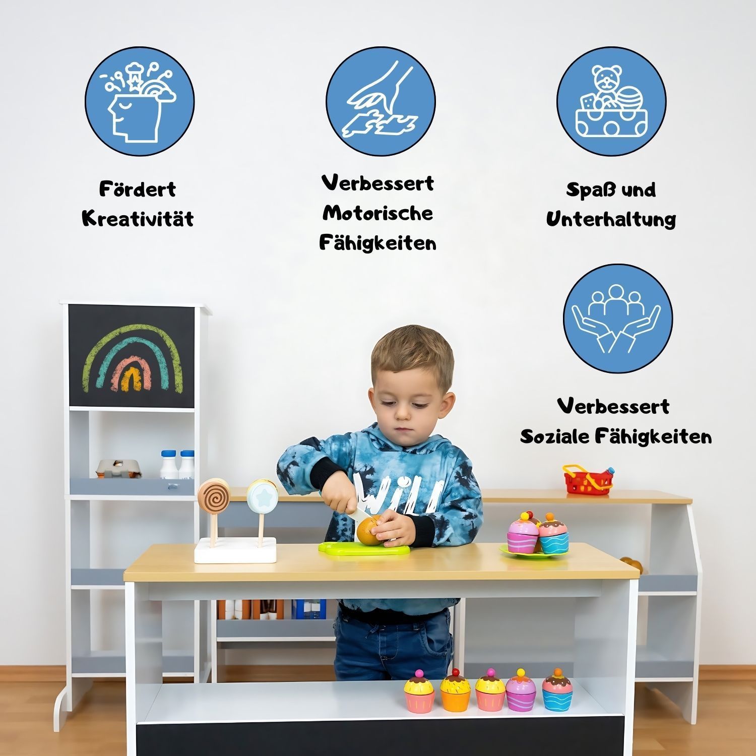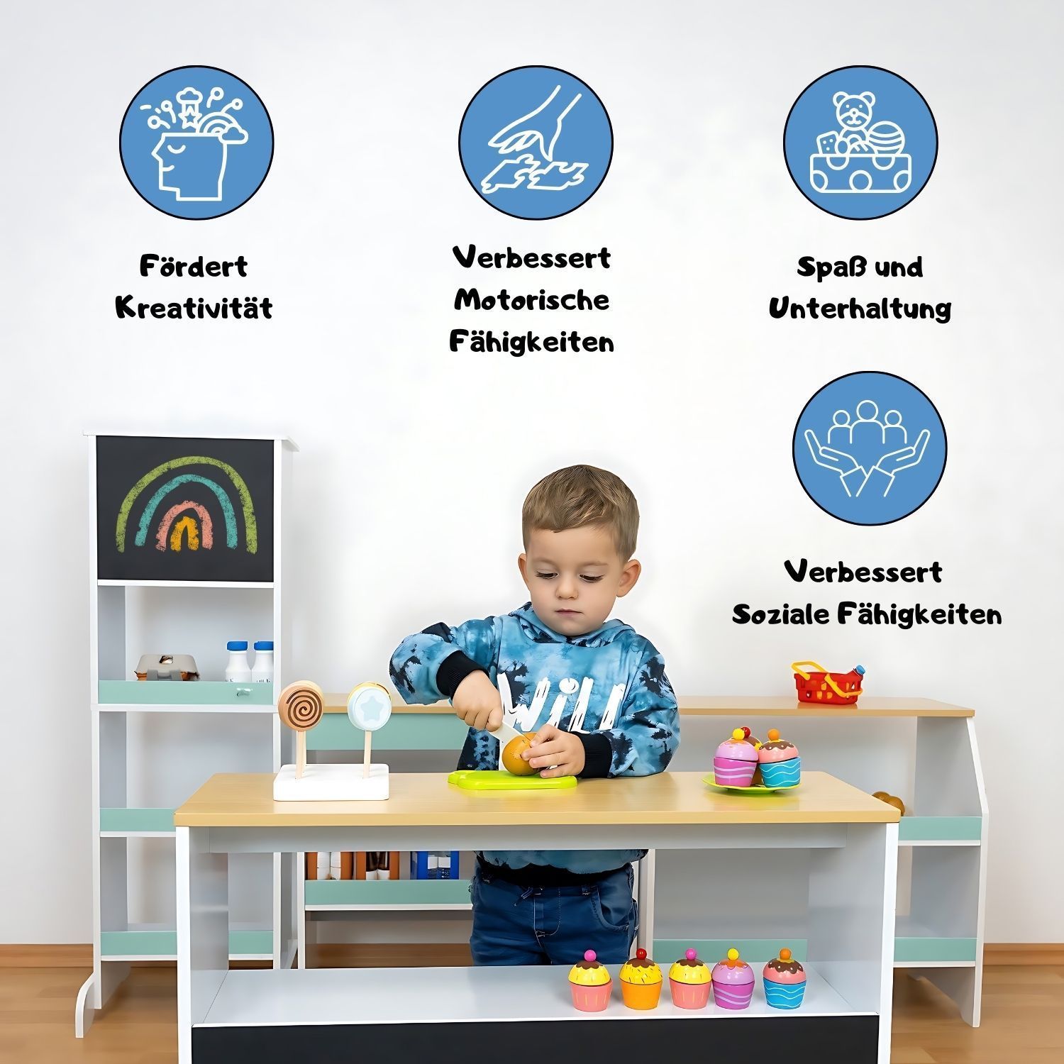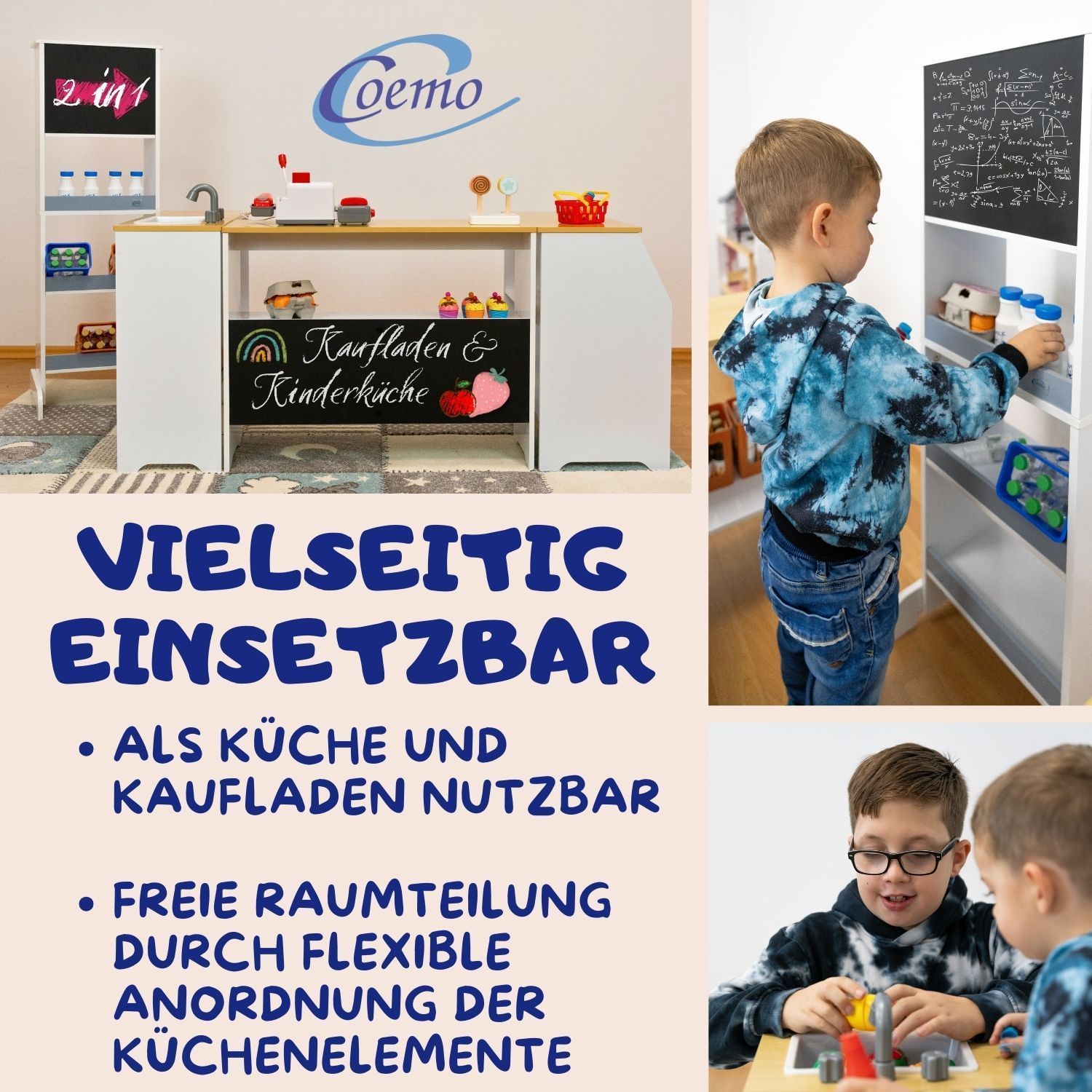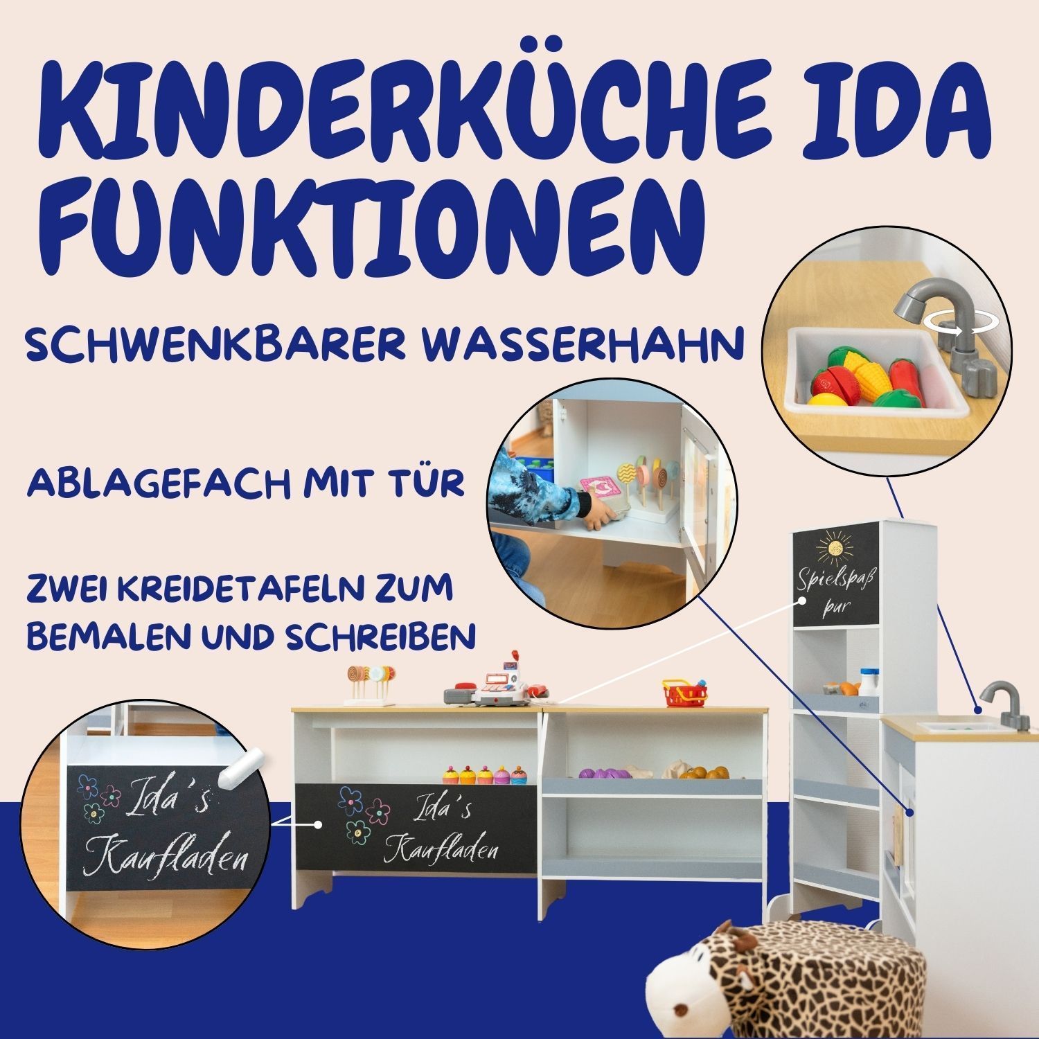 Coemo Spielküche Ida 4er Set mit Waschbecken Holz Kinderküche