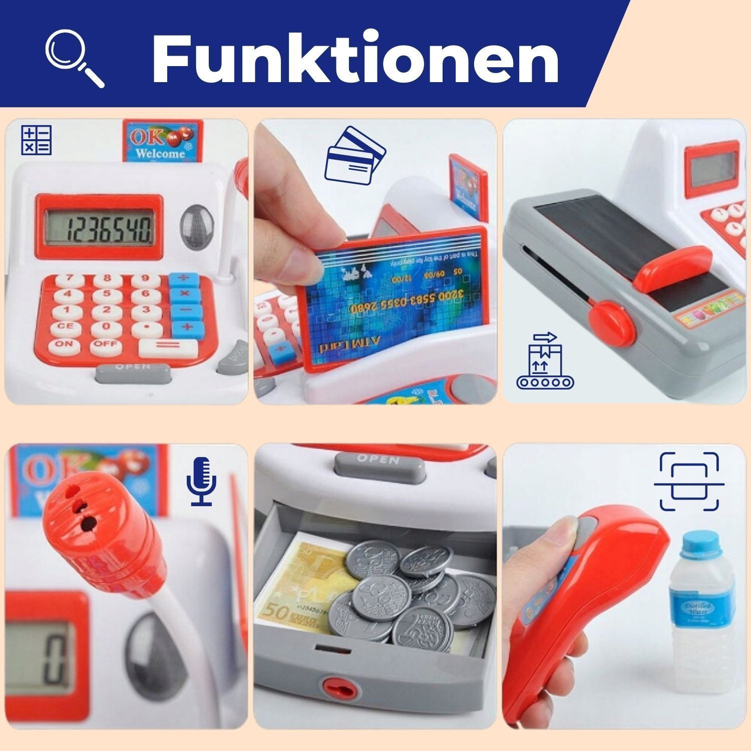 Coemo Spielzeug Kasse Linus für Kinder Kaufladen