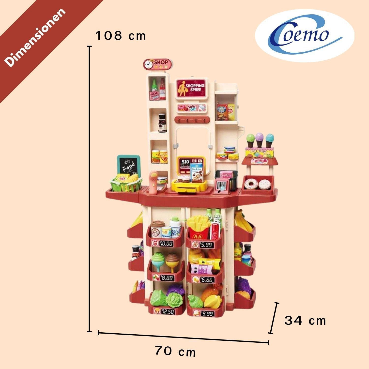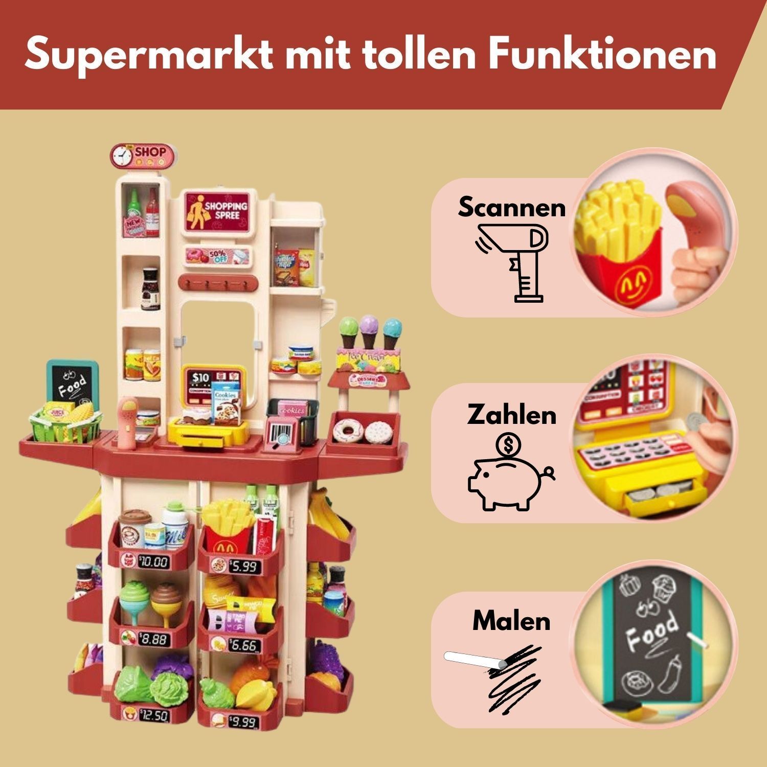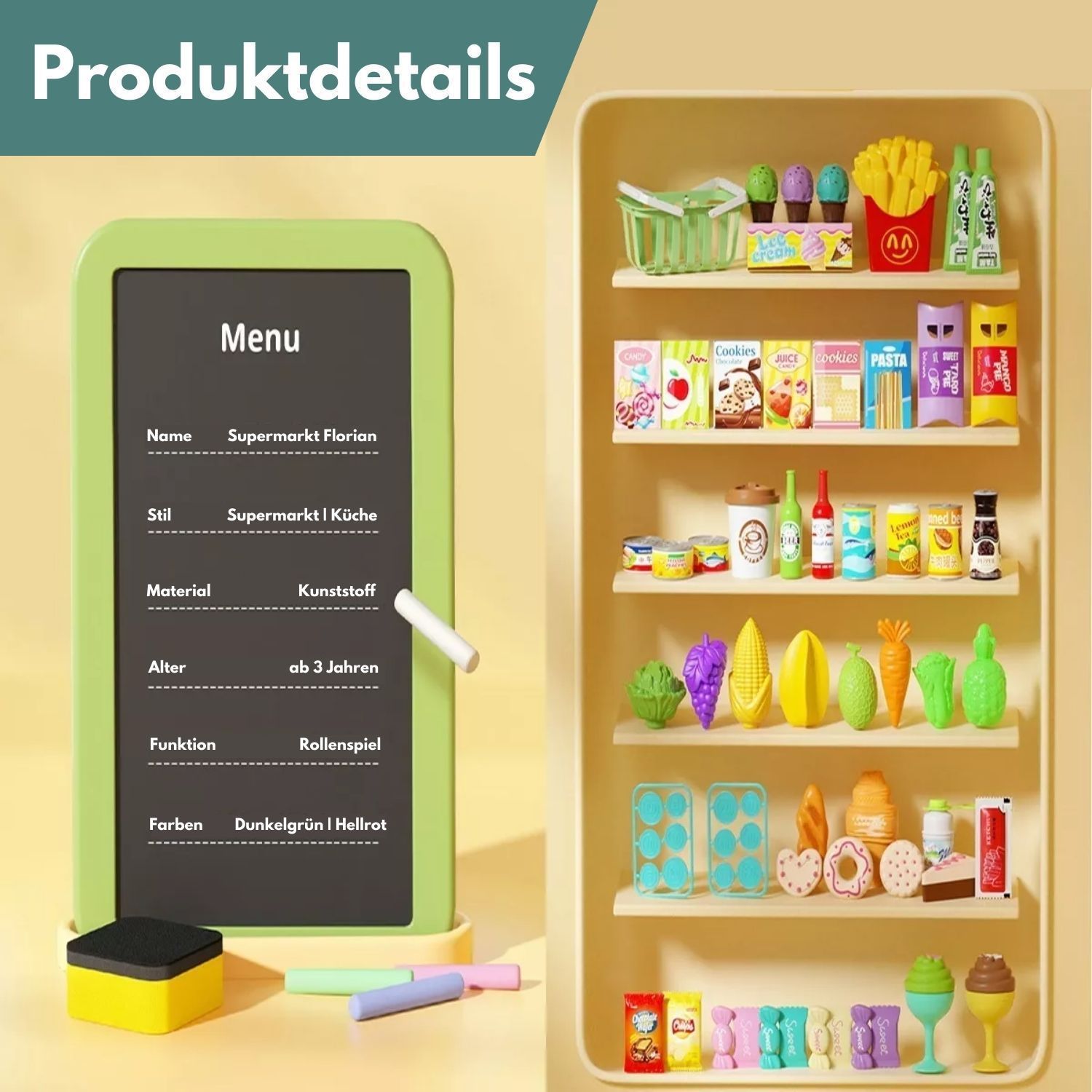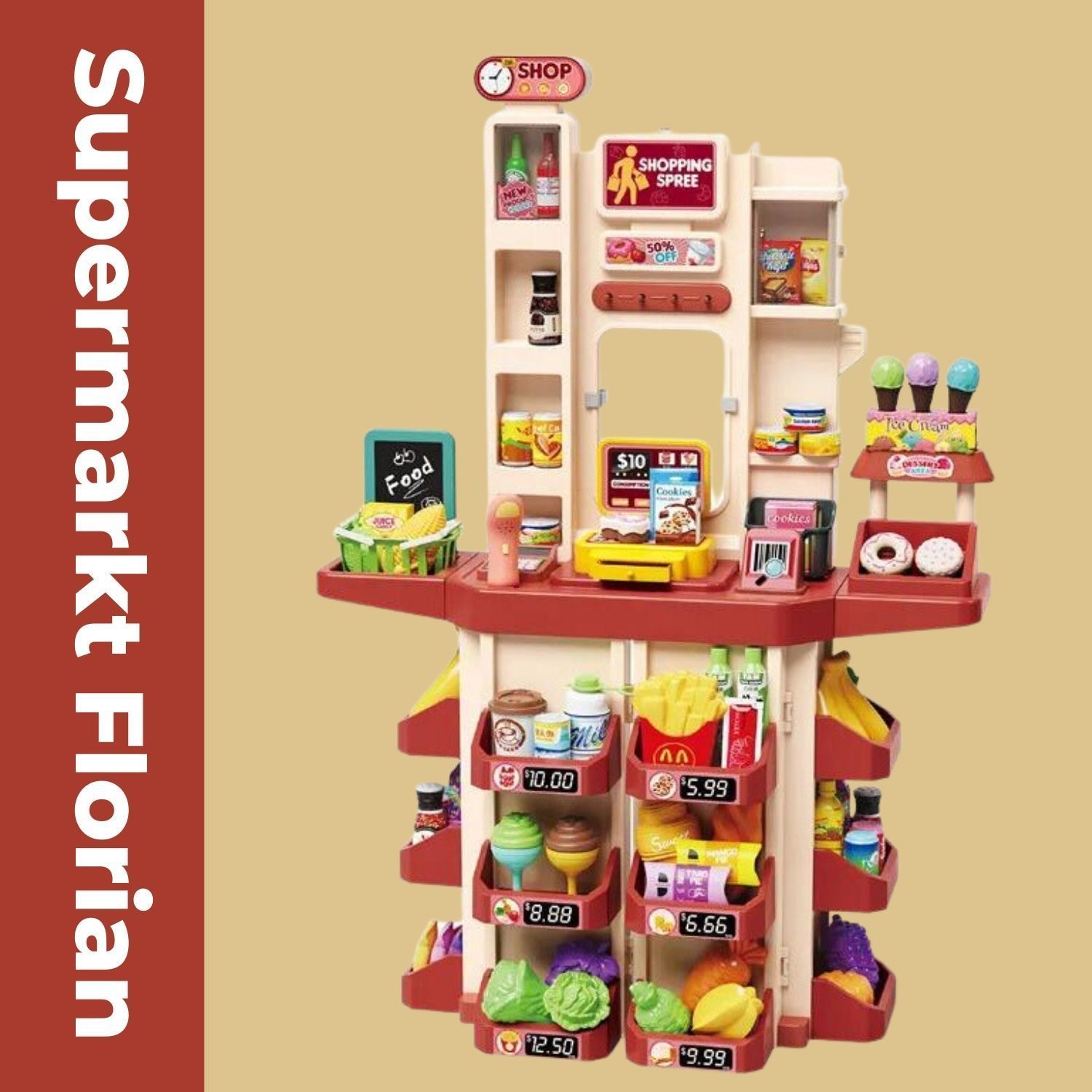 Garantierter Spielspaß für die ganze Familie mit dem Supermarkt Florian Der Supermarkt Florian mit vielem Spielzubehör ist ein moderner Kaufmannsladen. Hier können Kinder spielerisch ihren eigenen Lebensmittelladen führen und dabei Zahlen und Mengen kennenlernen. Egal ob hinter oder vor der Ladenthe