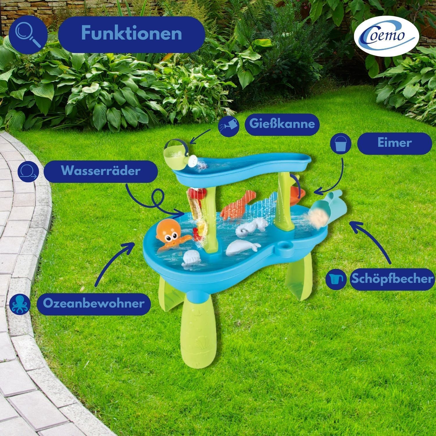 Coemo Wasserspieltisch Jonas Spieltisch mit zwei Spielebenen und Wasserfall