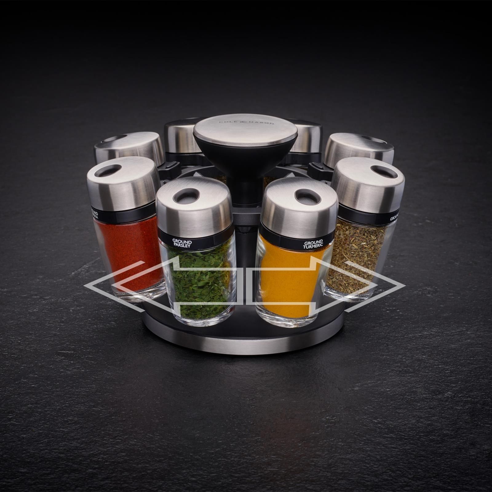 Cole & Mason Cole & Mason Gewürzkarussell drehbar mit 8 gefüllten Gewürzgläsern und Streuern