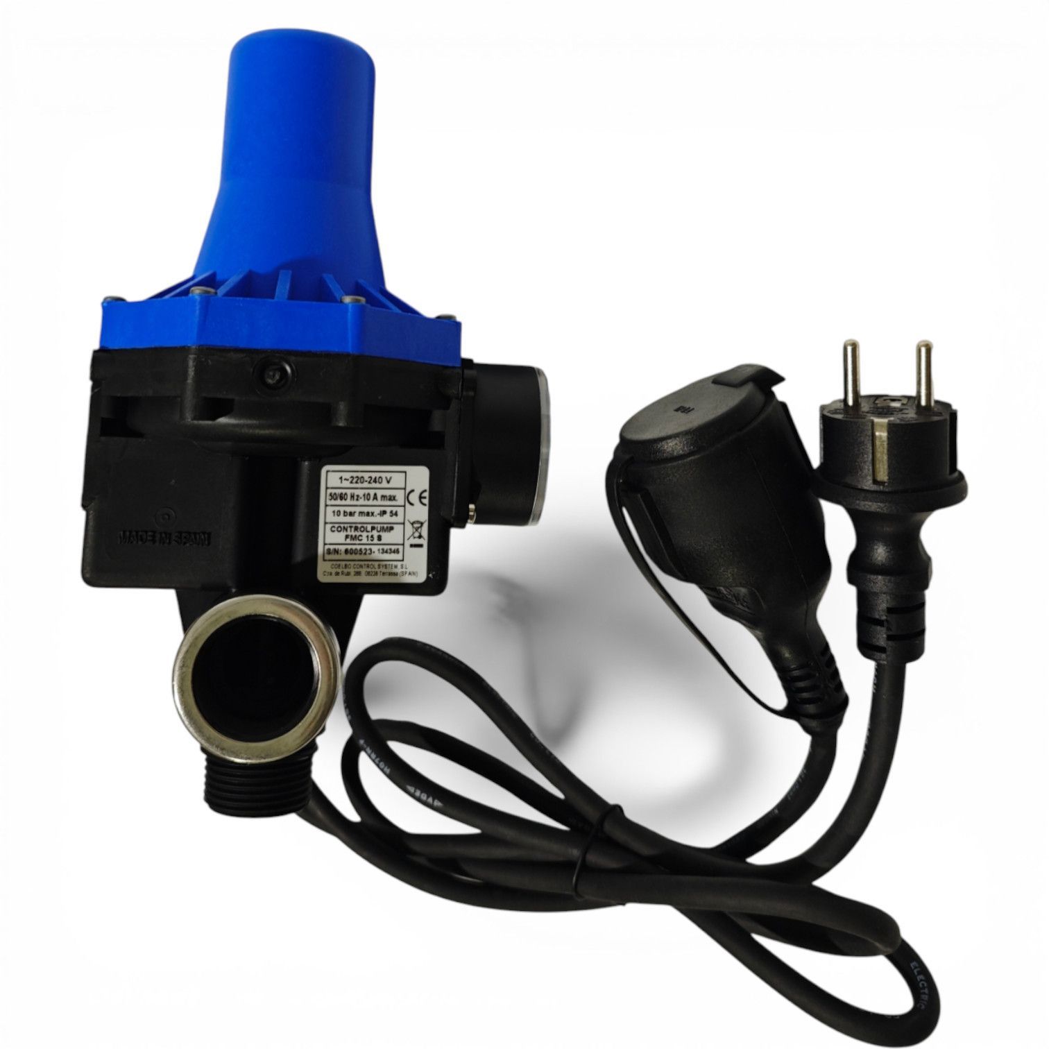 Membran Druckschalter Einschaltdruck ca. 2,1bar 230V Verkabelt mit Schuko Stecker Kupplung
