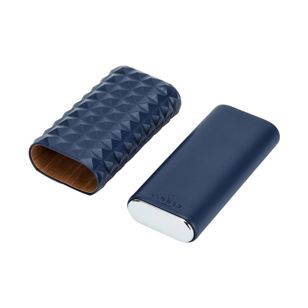 Colibri Quasar Zigarrenetui aus Leder, für 3 Zigarren, marine/chrom