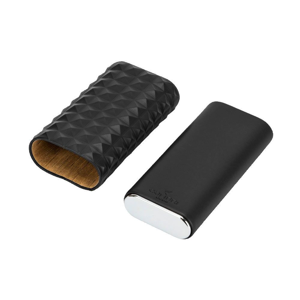 Colibri Quasar Zigarrenetui aus Leder, für 3 Zigarren, Schwarz/ Chrom