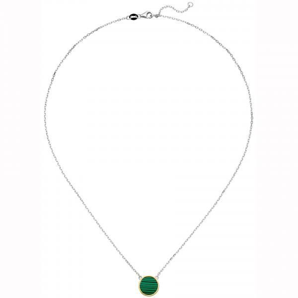 • Collier 925 Sterling Silber bicolor vergoldet mit Malachit 45 cm