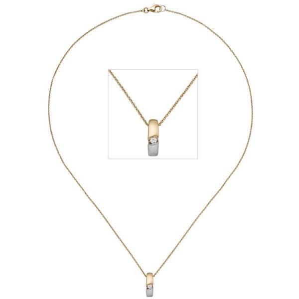 JOBO Collier, Anhänger 585 Gelbgold mattiert 1 Diamant Brillant 43 cm