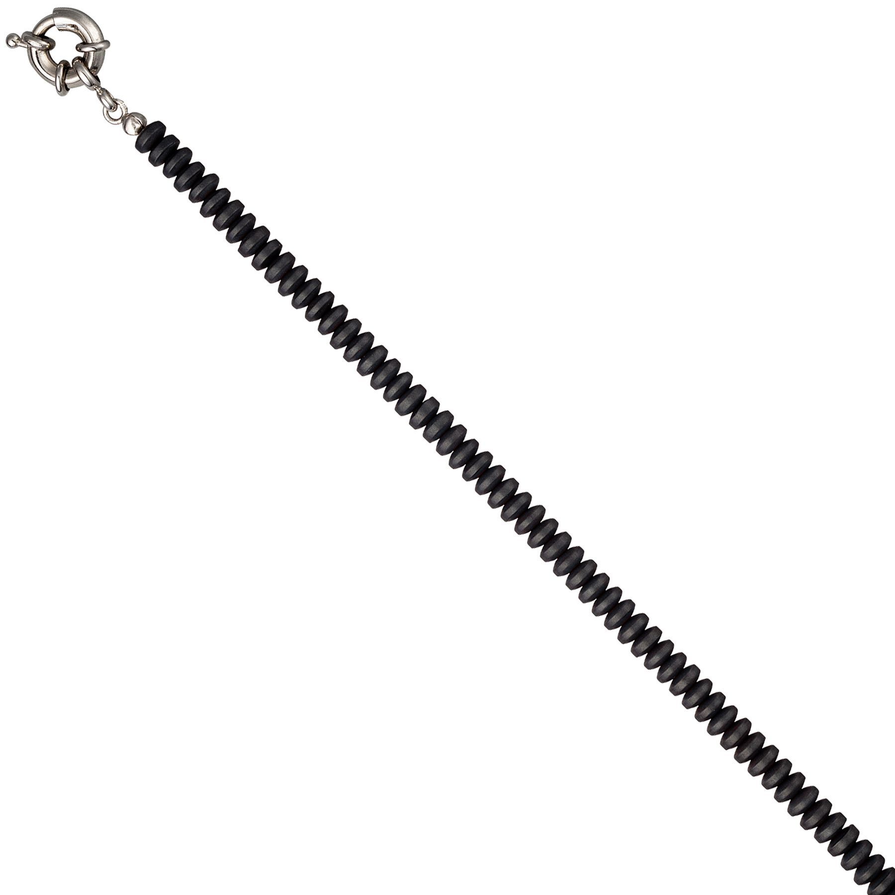 Collier, Hämatin (rek.), matt, mit Metallfederringverschluss, Länge ca. 45 cm, Durchmesser ca. 6 mm, Gewicht ca. 42,8 g * Bitte beachten Sie die Maße! Auf dem Foto kann der Artikel größer wirken *