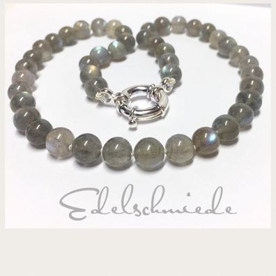 • Labradorit Collier Kugel mit 925/- Sterling Silber Verschluß 47 cm