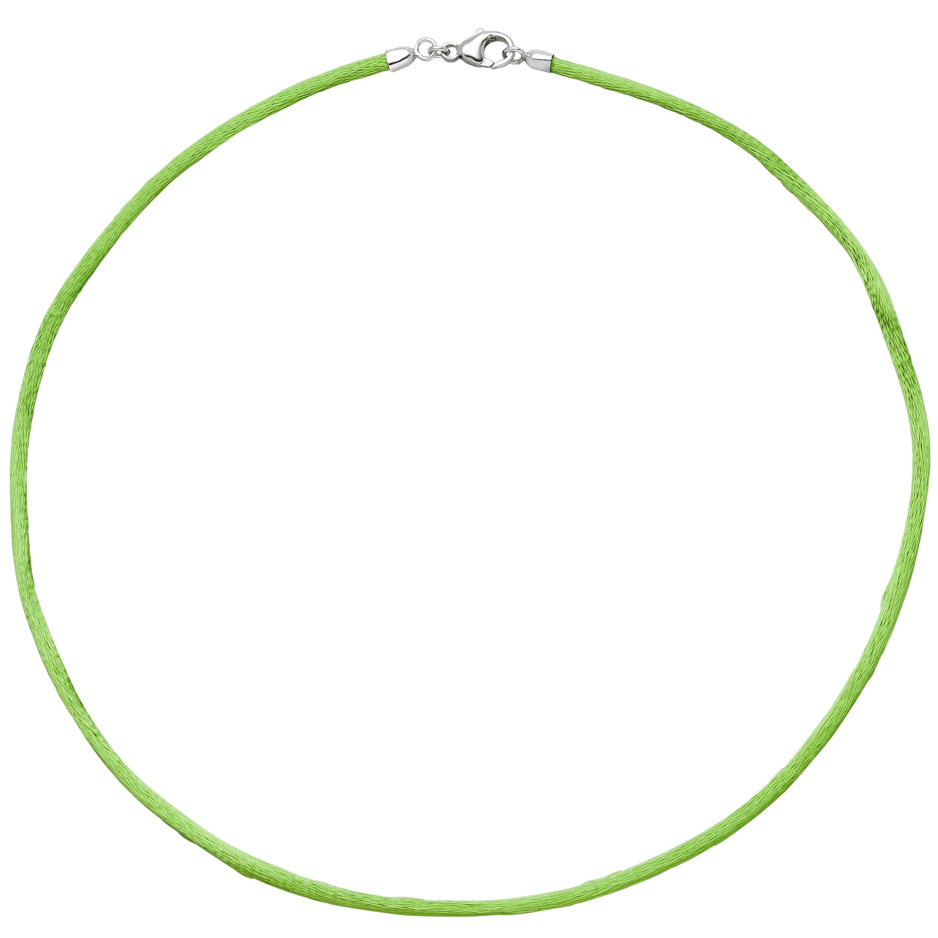 JOBO Collier Halskette Seide hellgrün 2,8 mm 42 cm, Verschluss 925 Silber Kette
