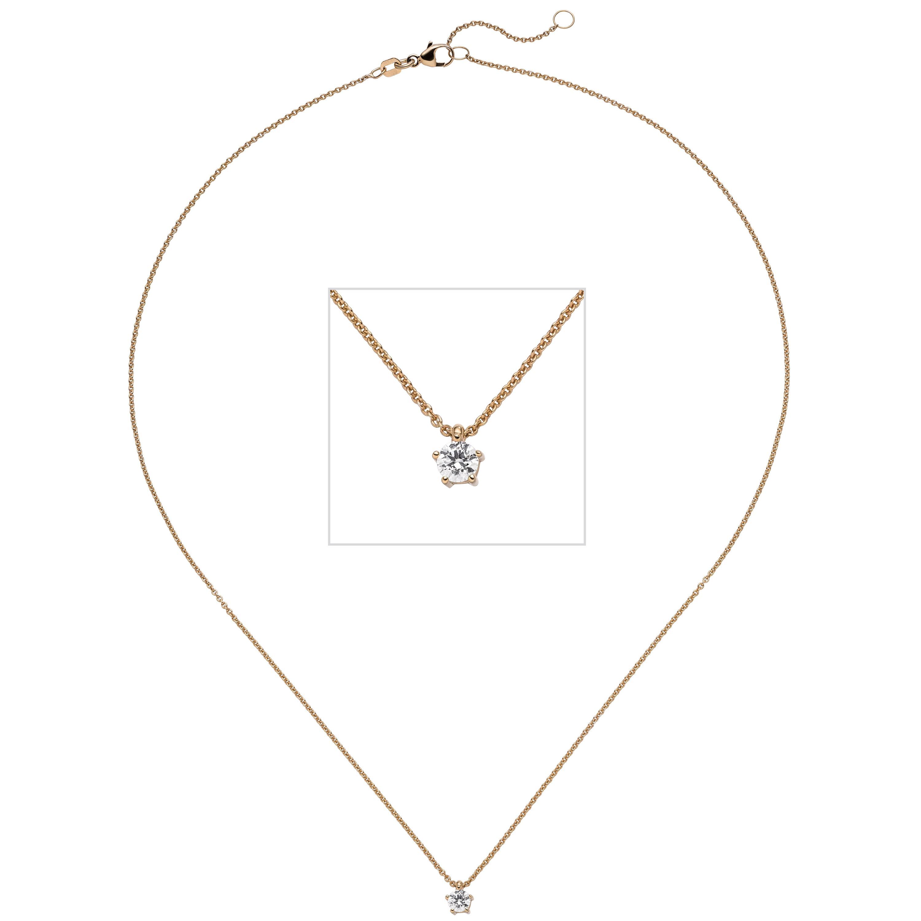 Collier Kette mit Anhänger 585 Gold Rotgold 1 Diamant Brillant 0,25 ct. 45 cm