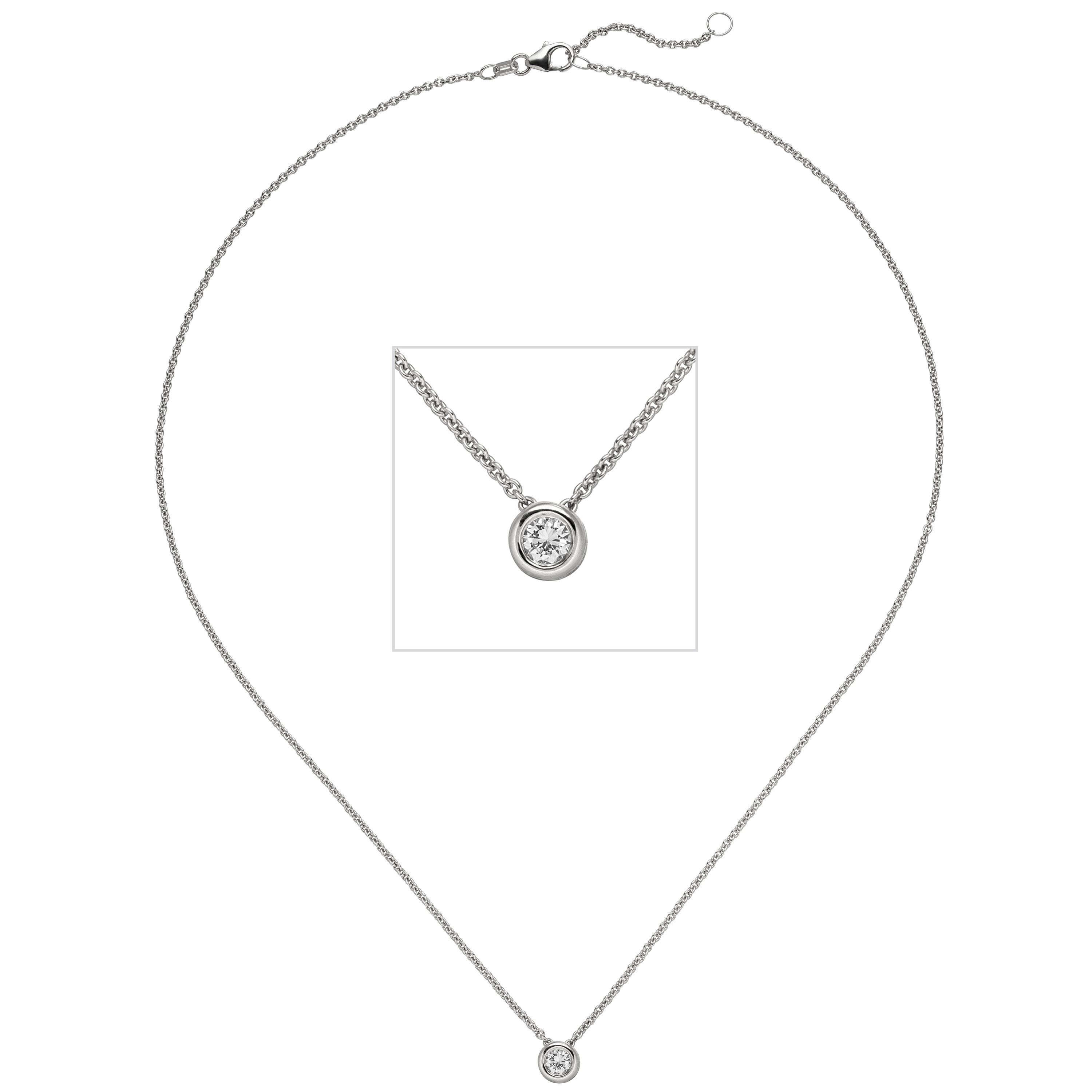 Collier Kette mit Anhänger 585 Gold Weißgold 1 Diamant Brillant 0,15 ct. 45 cm
