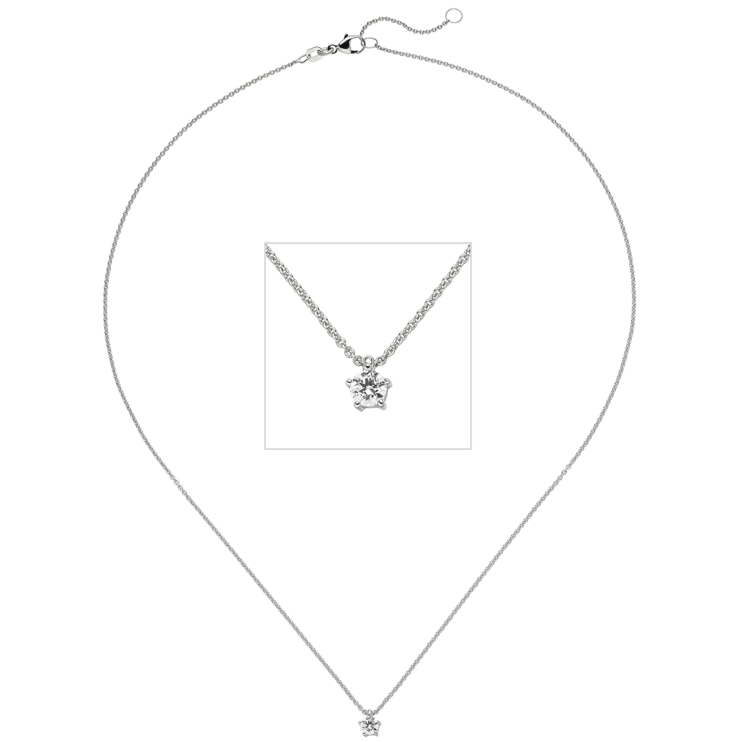 Collier Kette mit Anhänger 585 Gold Weißgold 1 Diamant Brillant 0,15 ct. 45 cm