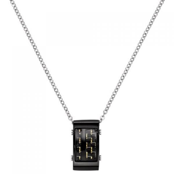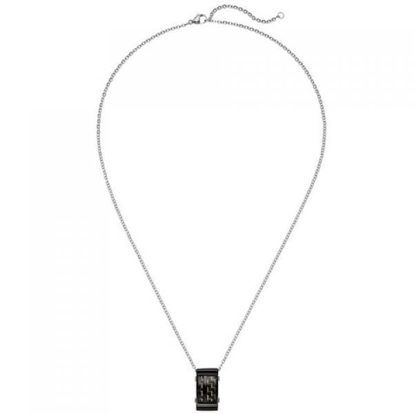 JOBO Collier Kette mit Anhänger Edelstahl schwarz mit Carbon Einlagen 55 cm