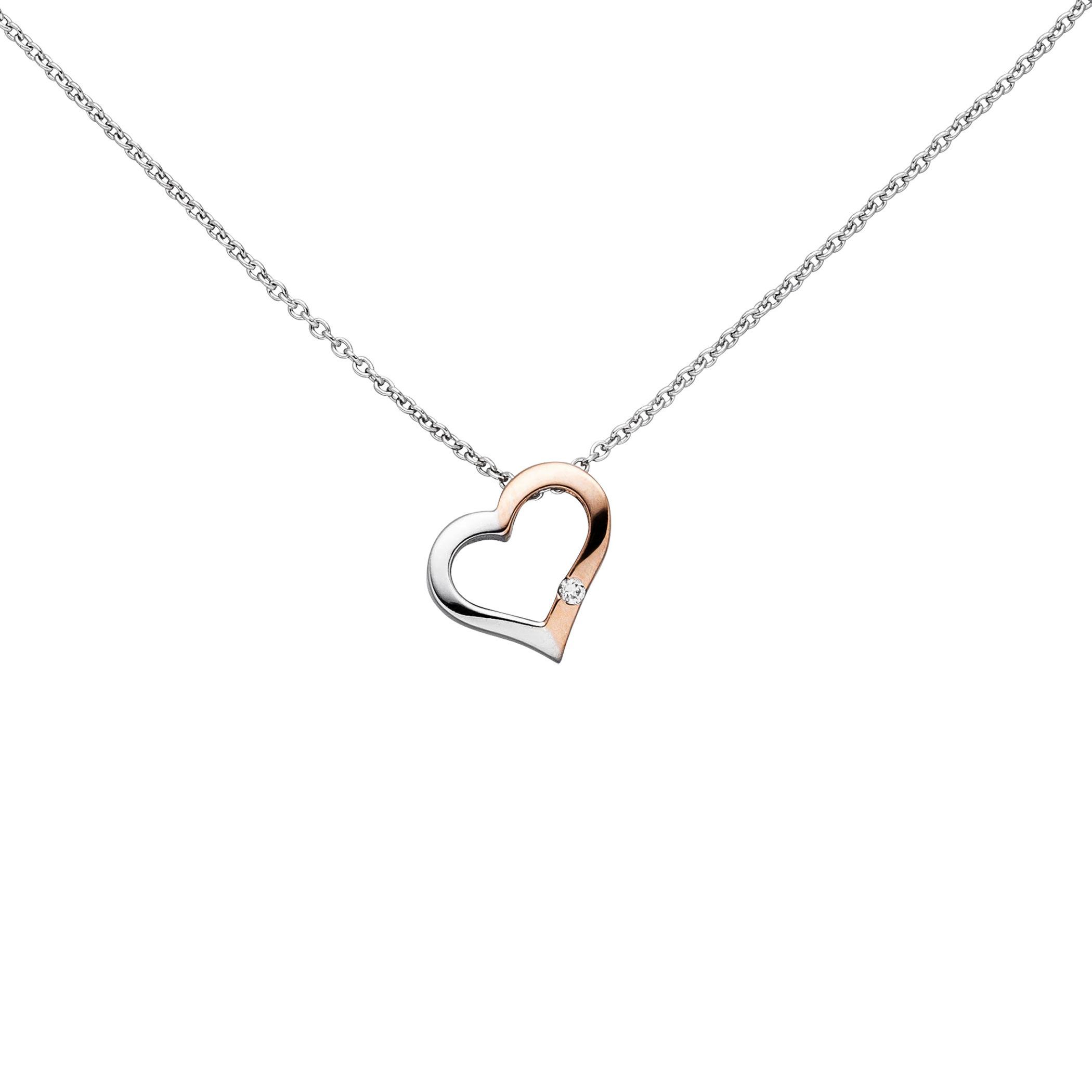 Collier Kette mit Anhänger Herz 585 Gold bicolor 1 Diamant Brillant 42 cm