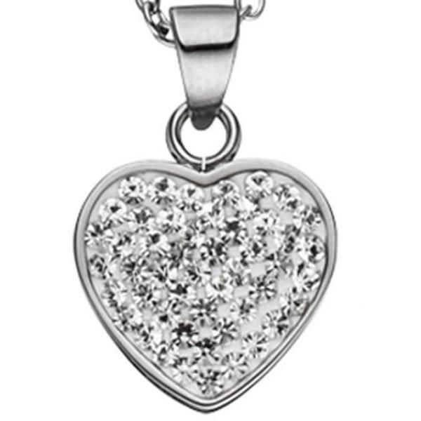 JOBO Collier Kette mit Anhänger Herz aus Edelstahl mit Kristallen 45 cm