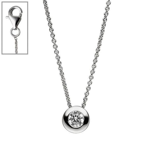 JOBO Collier Kette mit Anhänger rund 925 Sterling Silber 1 Zirkonia 42 cm