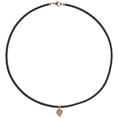 • Collier Halskette Leder taupe mit 585 Rotgold 17 Diamanten 45 cm