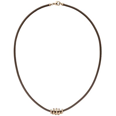 • Collier Halskette Leder taupe mit 585 Gold Rotgold 17 Diamanten Brillanten 45 cm