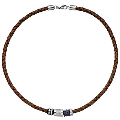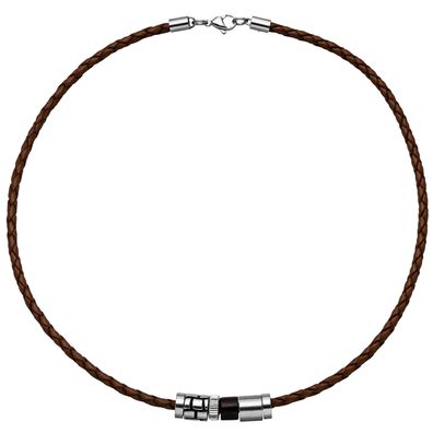 • Collier Halskette Leder braun mit Edelstahl teilplattiert 45 cm Kette Lederkette