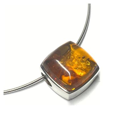 • Collier aus 925 Silber mit Cognac-Bernstein-Anhänger