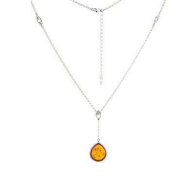 • Collier aus 925 Silber mit Cognac-Bernstein-Anhänger