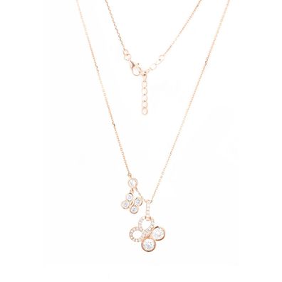 • Collier aus vergoldetem 925 Silber mit 2 Anhänger aus Zirkonia, Federring