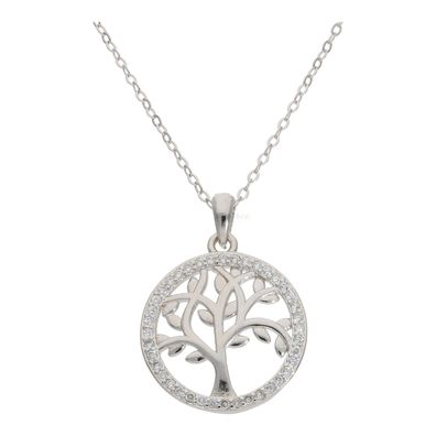 • Collier mit Anhänger Silber 925 Zirkonia, Lebensbaum FSCO013si