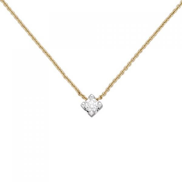 • 0,10 Carat Diamant Solitär Anhänger mit Kette Collier in 14 Karat Weißgold