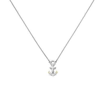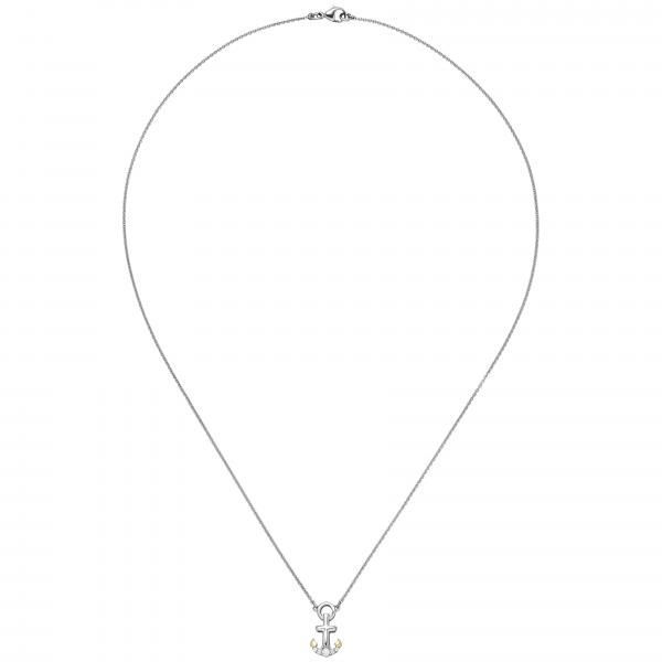 JOBO Collier mit Anker Anhänger 925 Silber bicolor vergoldet 5 Zirkonia 45 cm