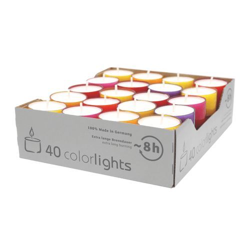 Colorlights Winter-Edition, WENZEL-Teelichter, Brenndauer ca. 8h, 24/38 mm, 40 S