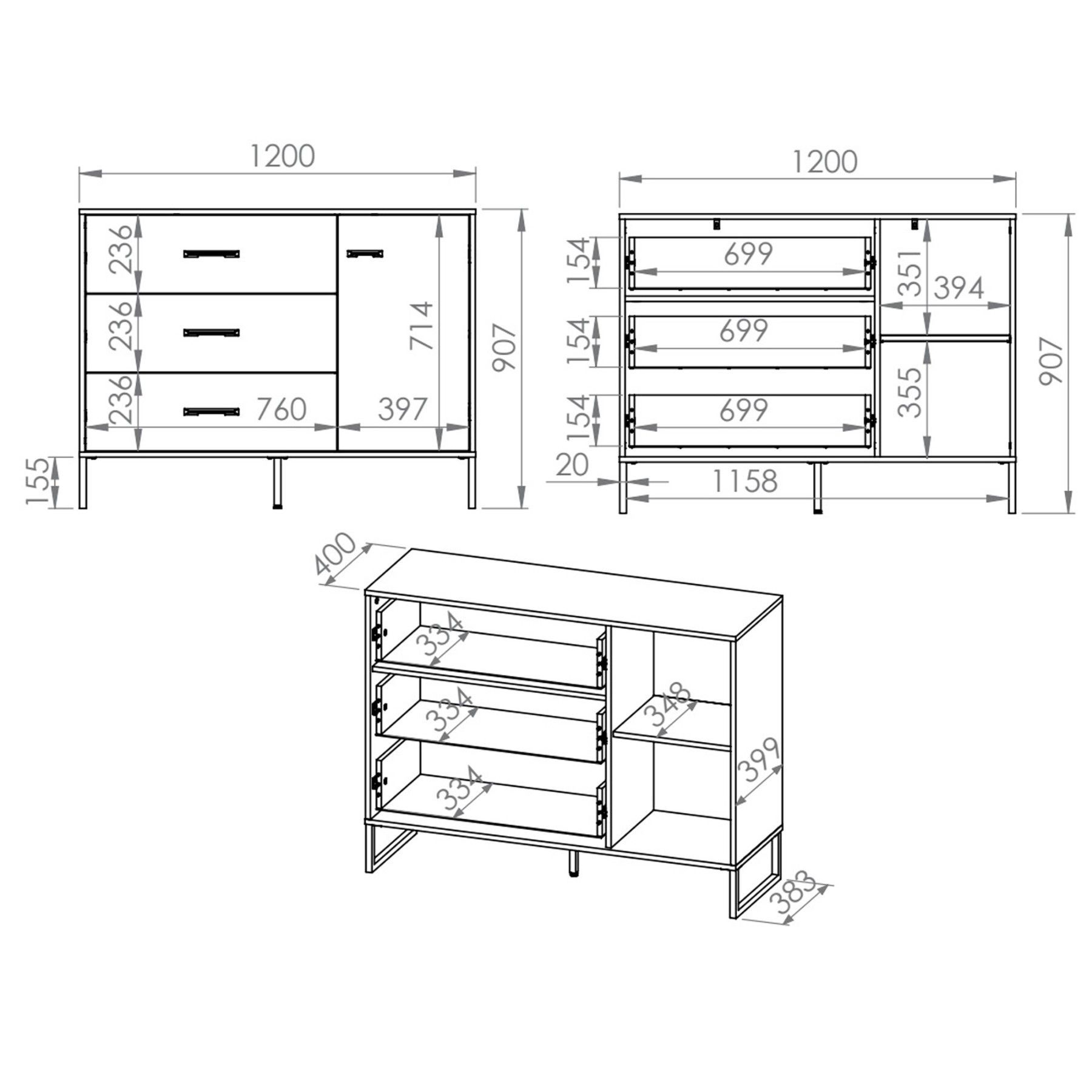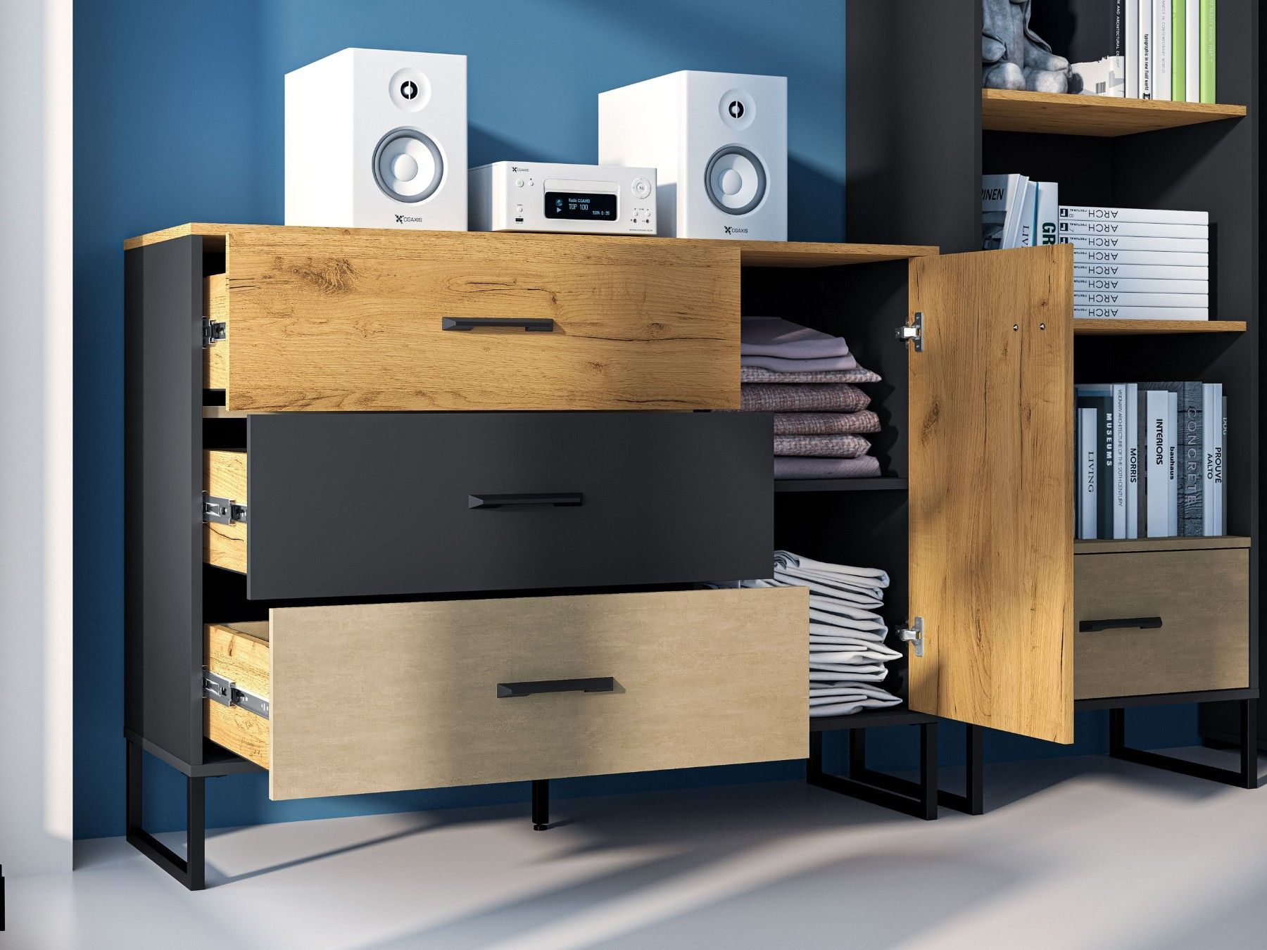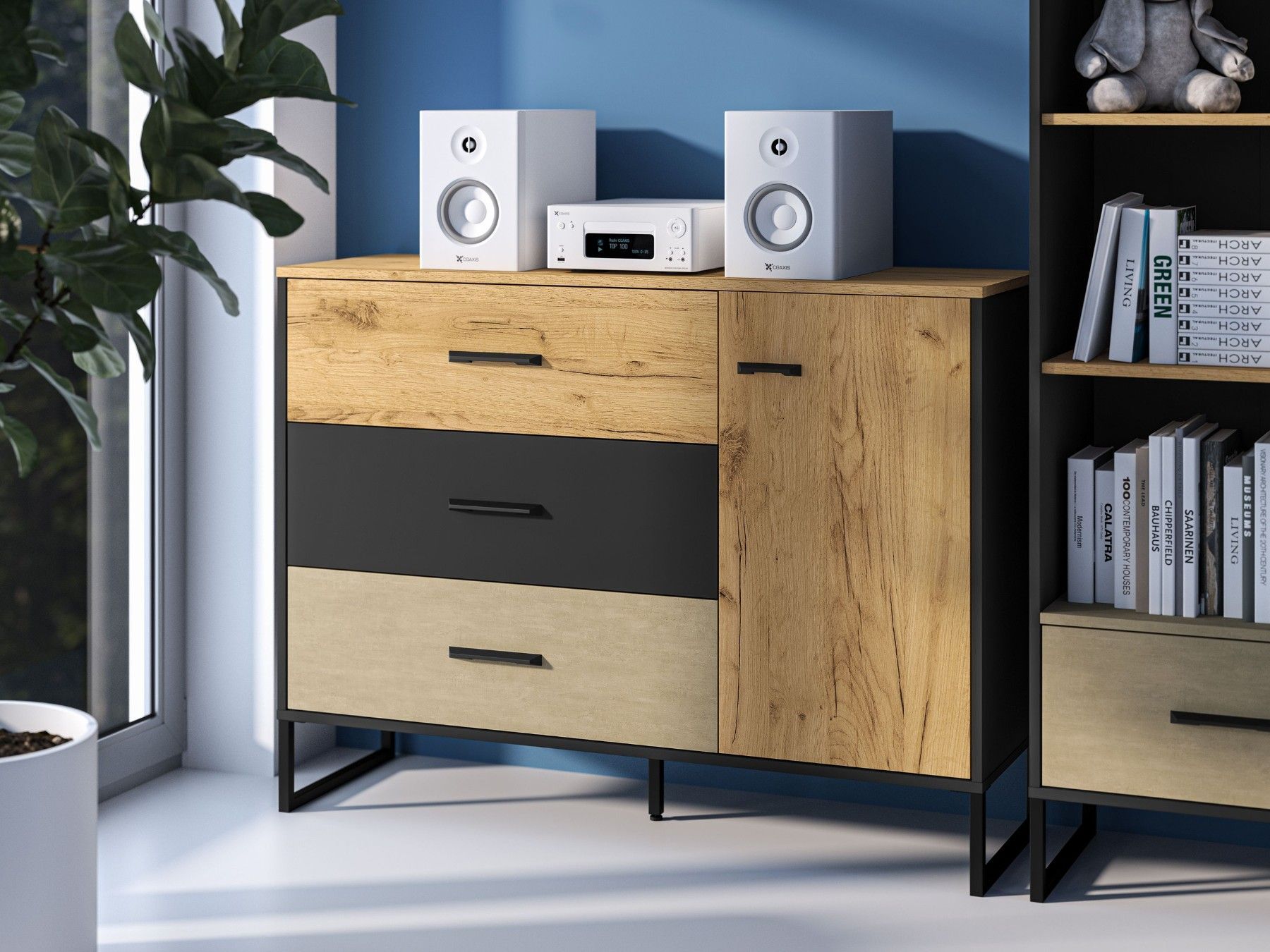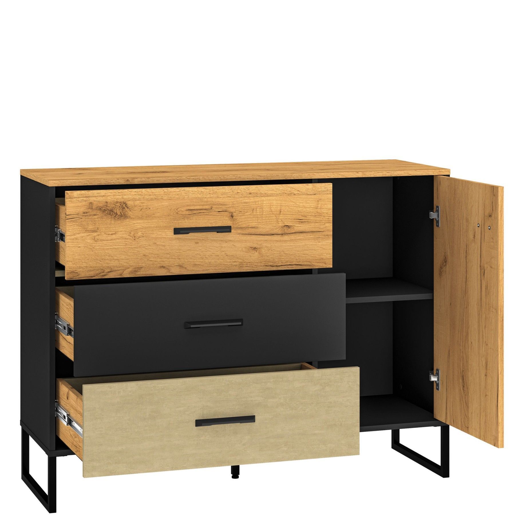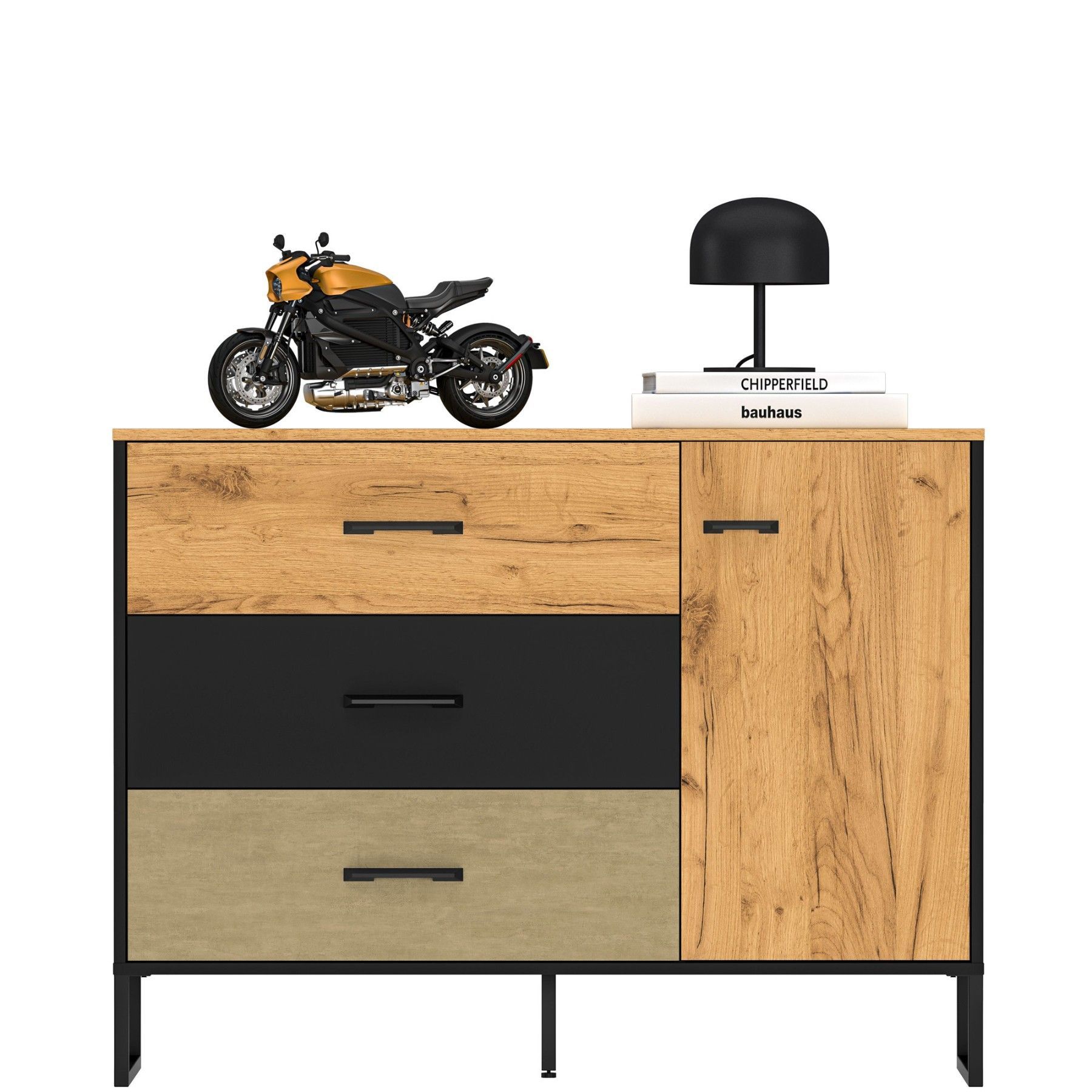 Colt 06 Kommode mit DREI Schubladen Einer Schranktüre auf Möbelbeinen