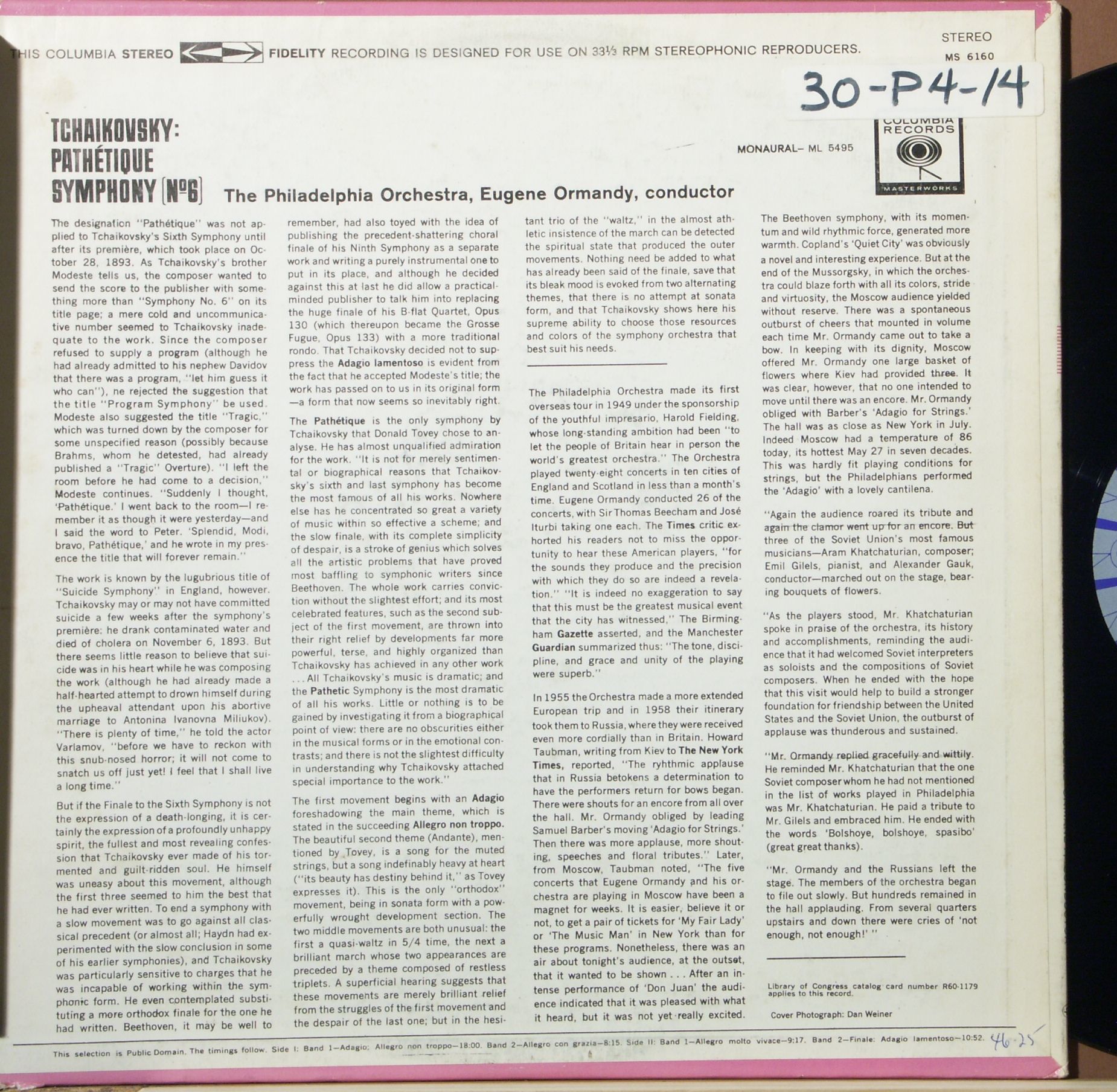 Columbia Masterworks MS 6160 - Pyotr Ilyich Tchaikovsky, The Philadelphia Orches