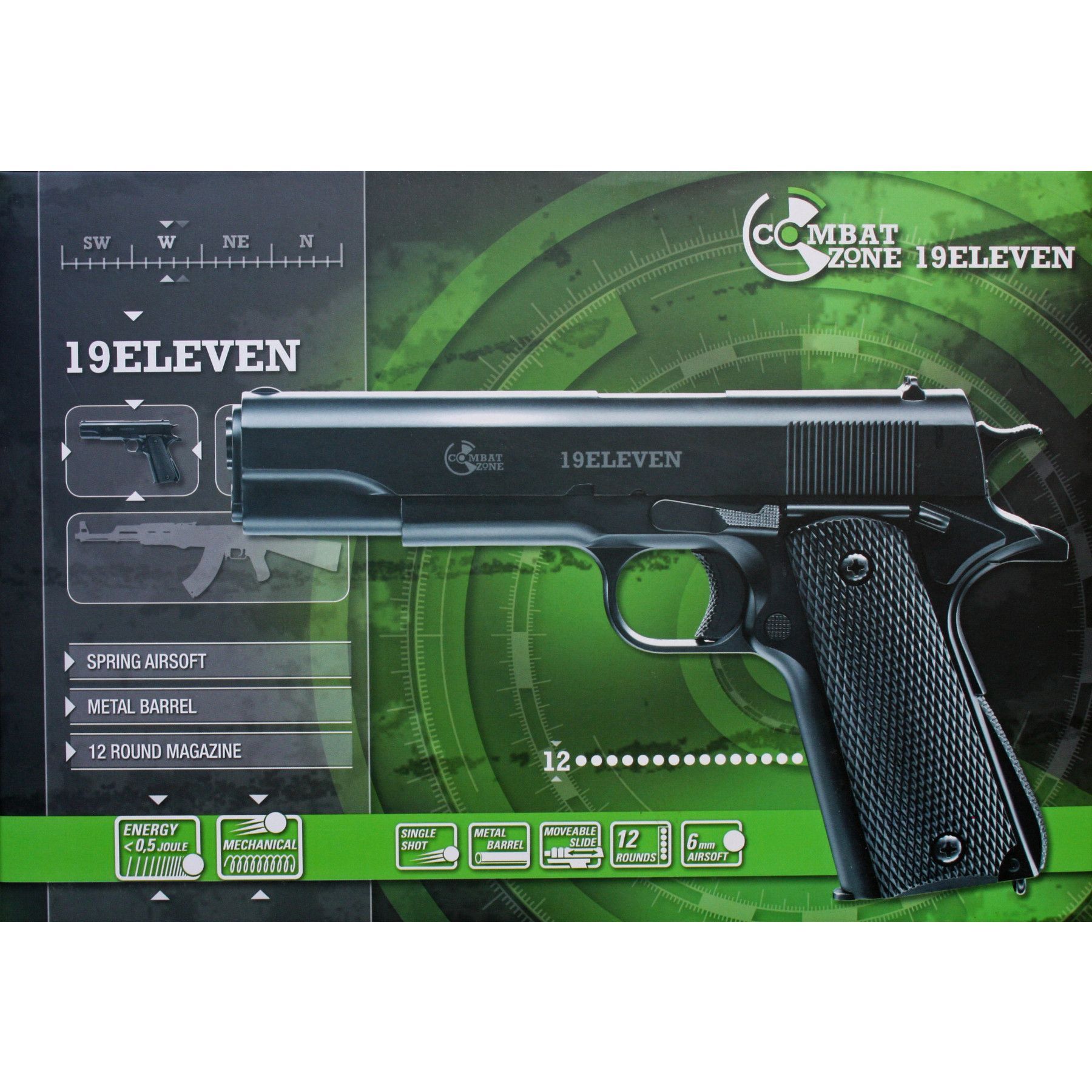 Combat Zone Airsoft Pistole 19 Eleven schwarz Federdruck ab 14 Jahren < 0,5 Joule